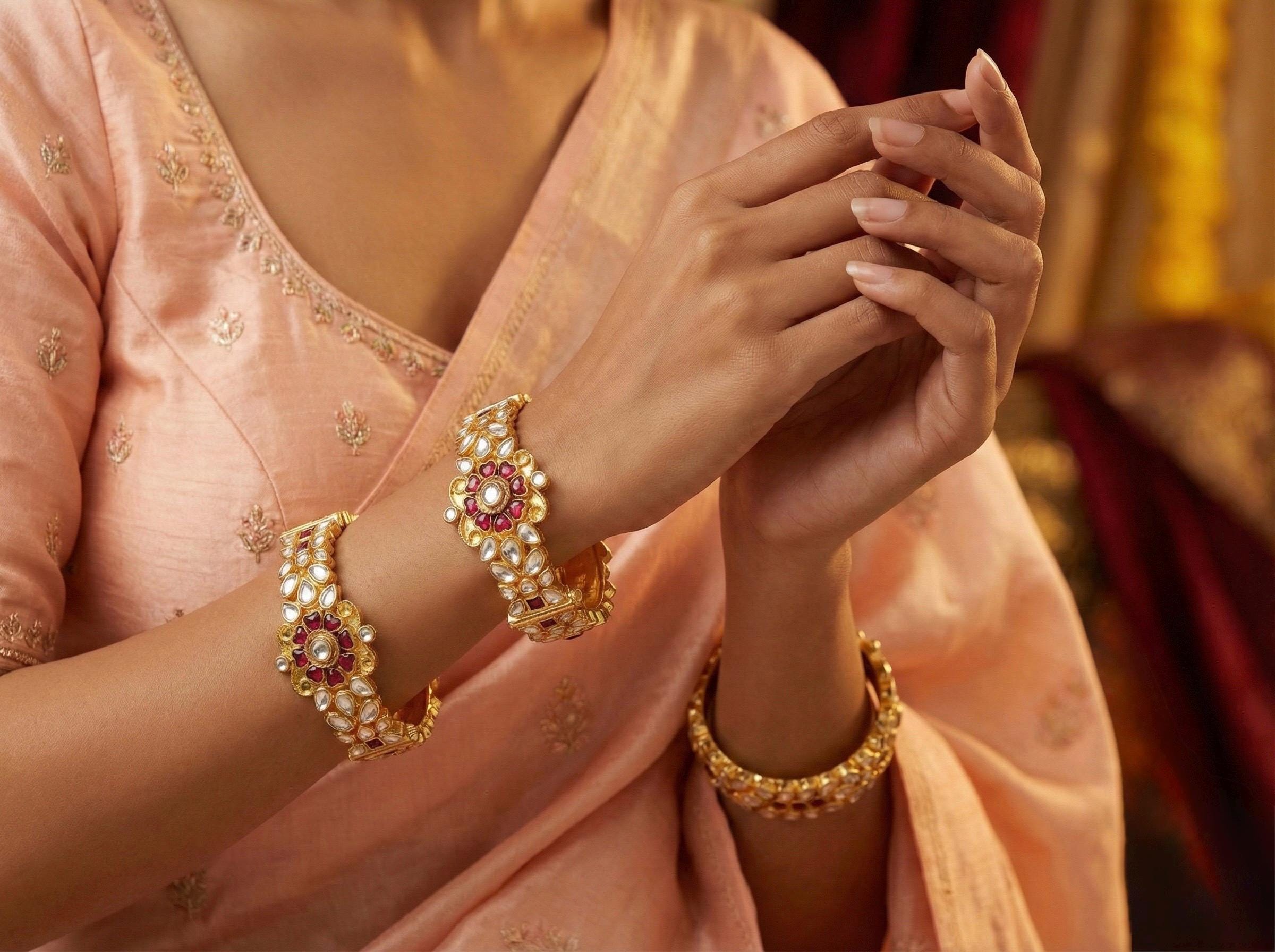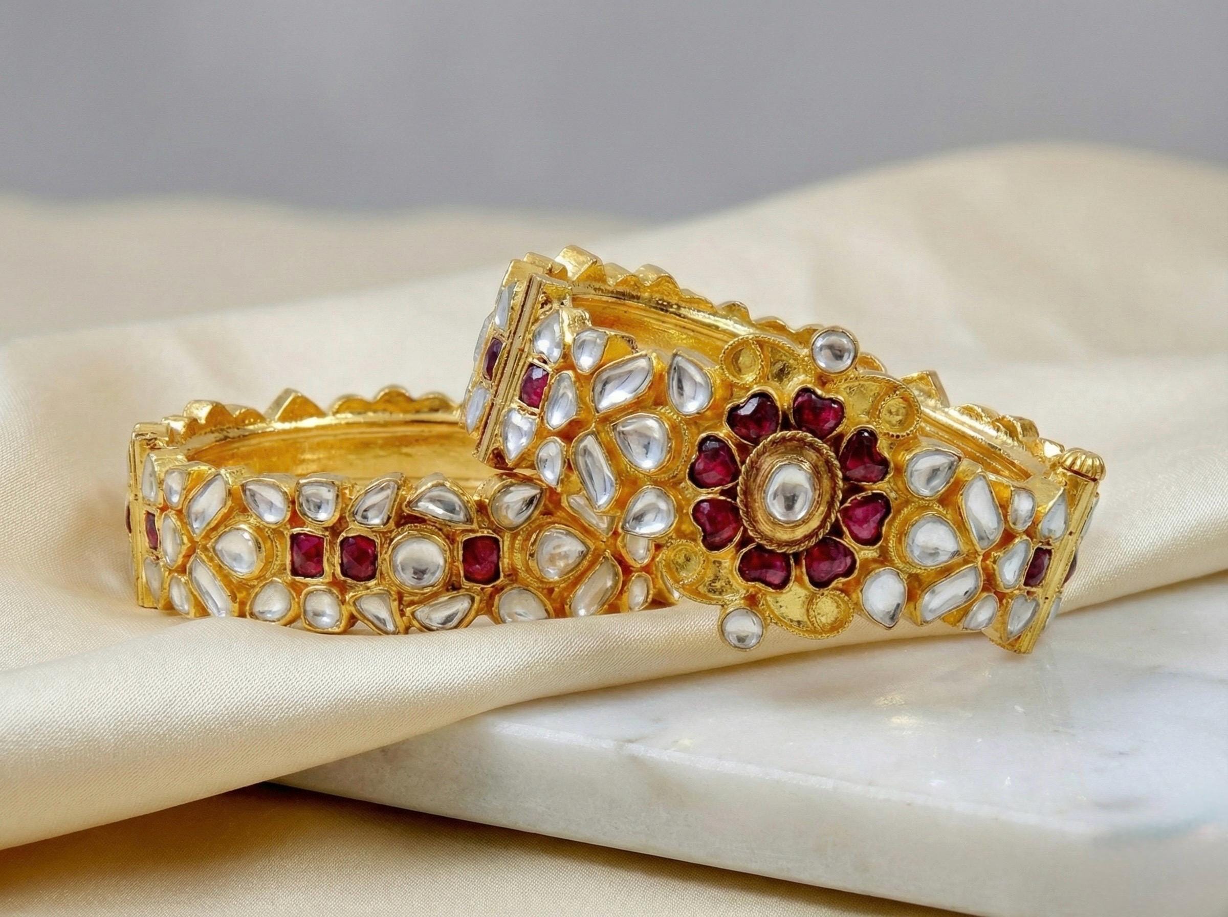 • This is Gold Finish Kundan Bracelet Bangle.Its Perfect for Wedding Occasion as well as Unique and Ethnic Traditional Bangle to gift and Also Bridal wear to match with Wedding Outfits.