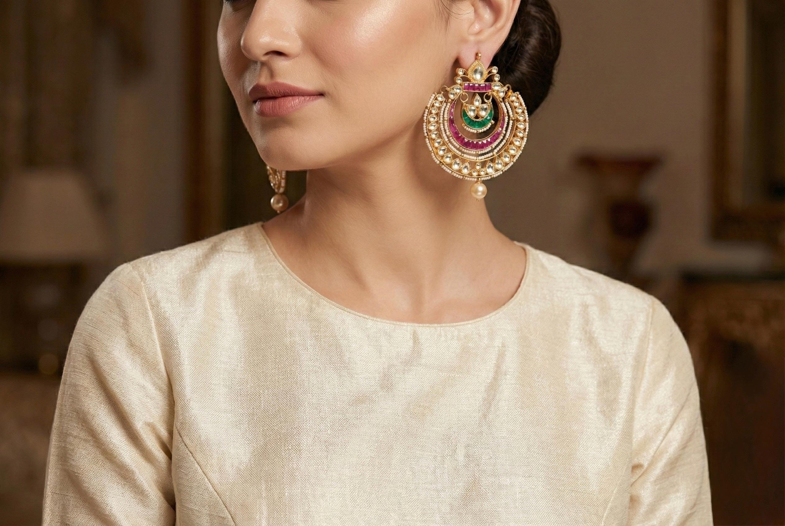 • Its Handmade Indian Ethnic Kundan Earrings.