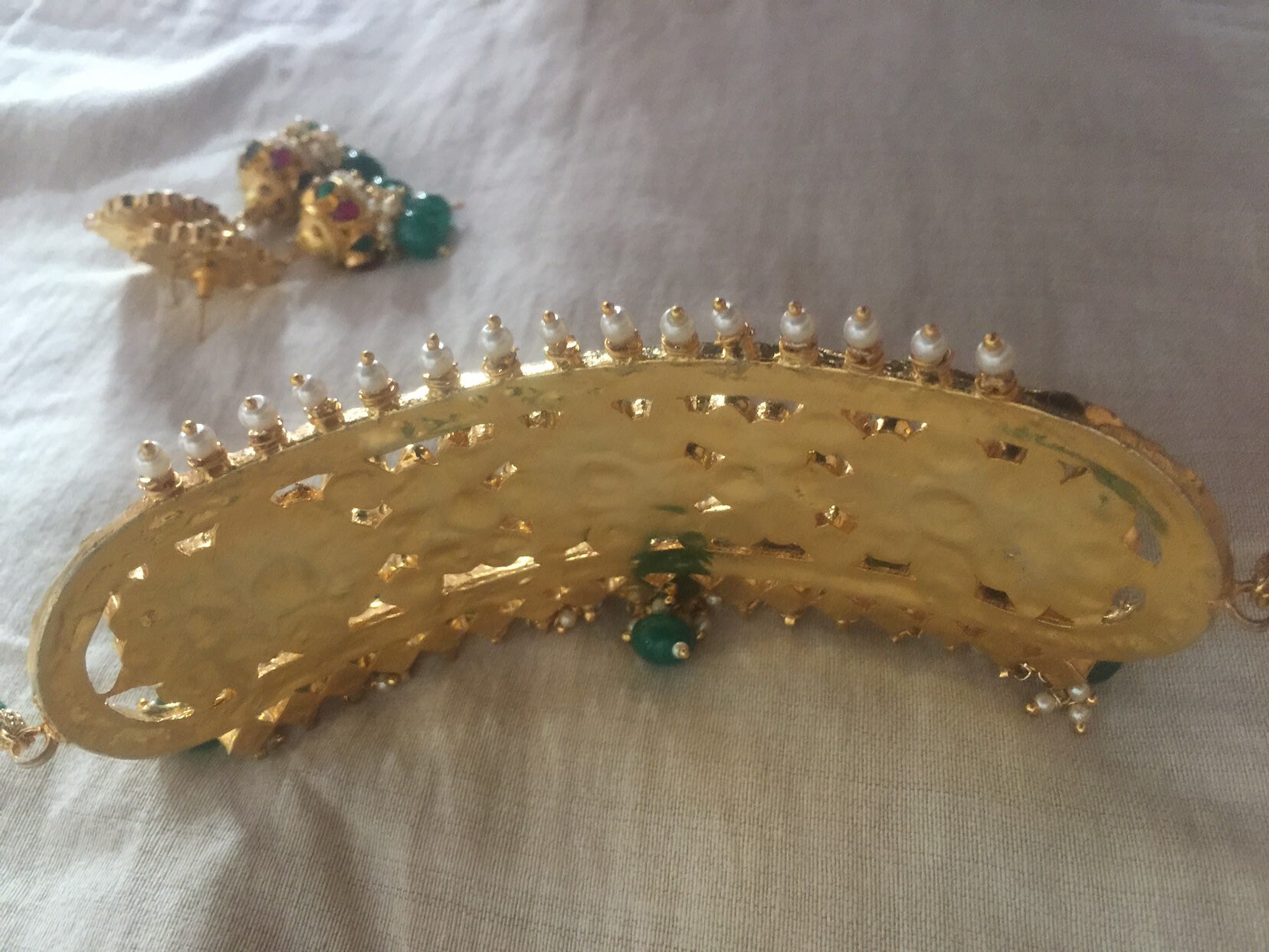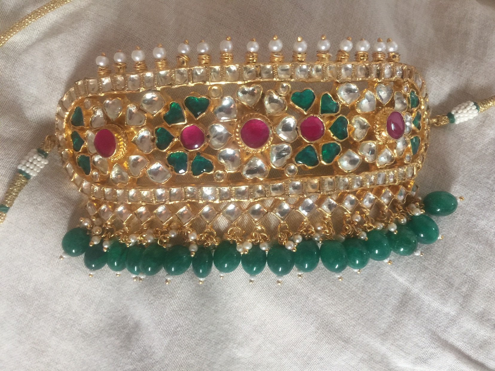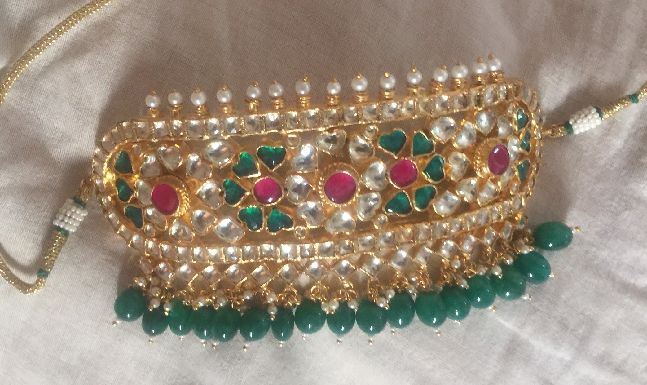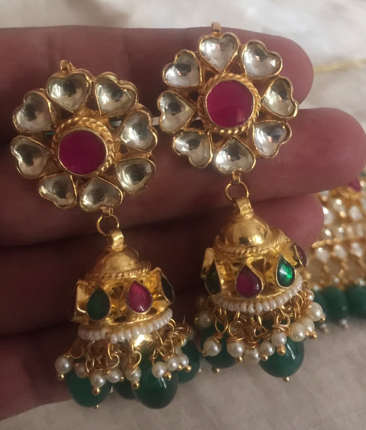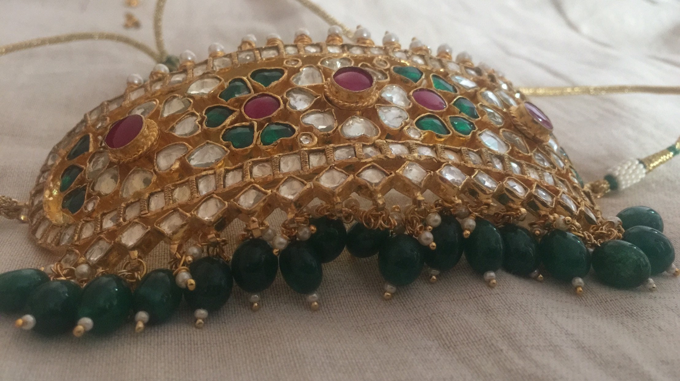 All of our Kundan Jewelry is 100% handmade and 22k Gold Plated with ancient Kundan stone setting method using silver foils. It is one of the most favorable jewelry since last some decades till present time for Indian as well as Asian Ethnic and Traditional Culture.