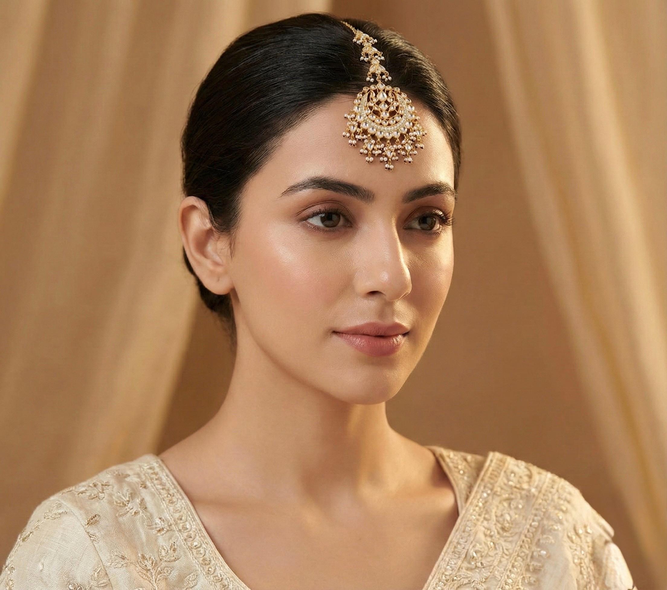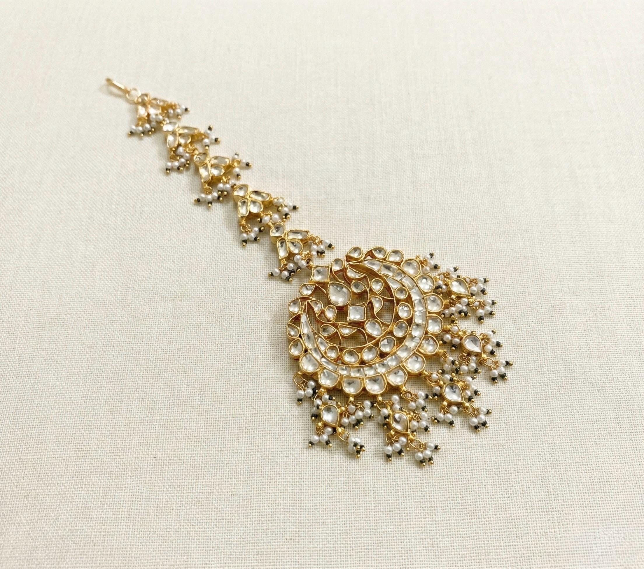 • Indian Traditional Handmade Jewelry Kundan Mangtikka for Indian Brides.