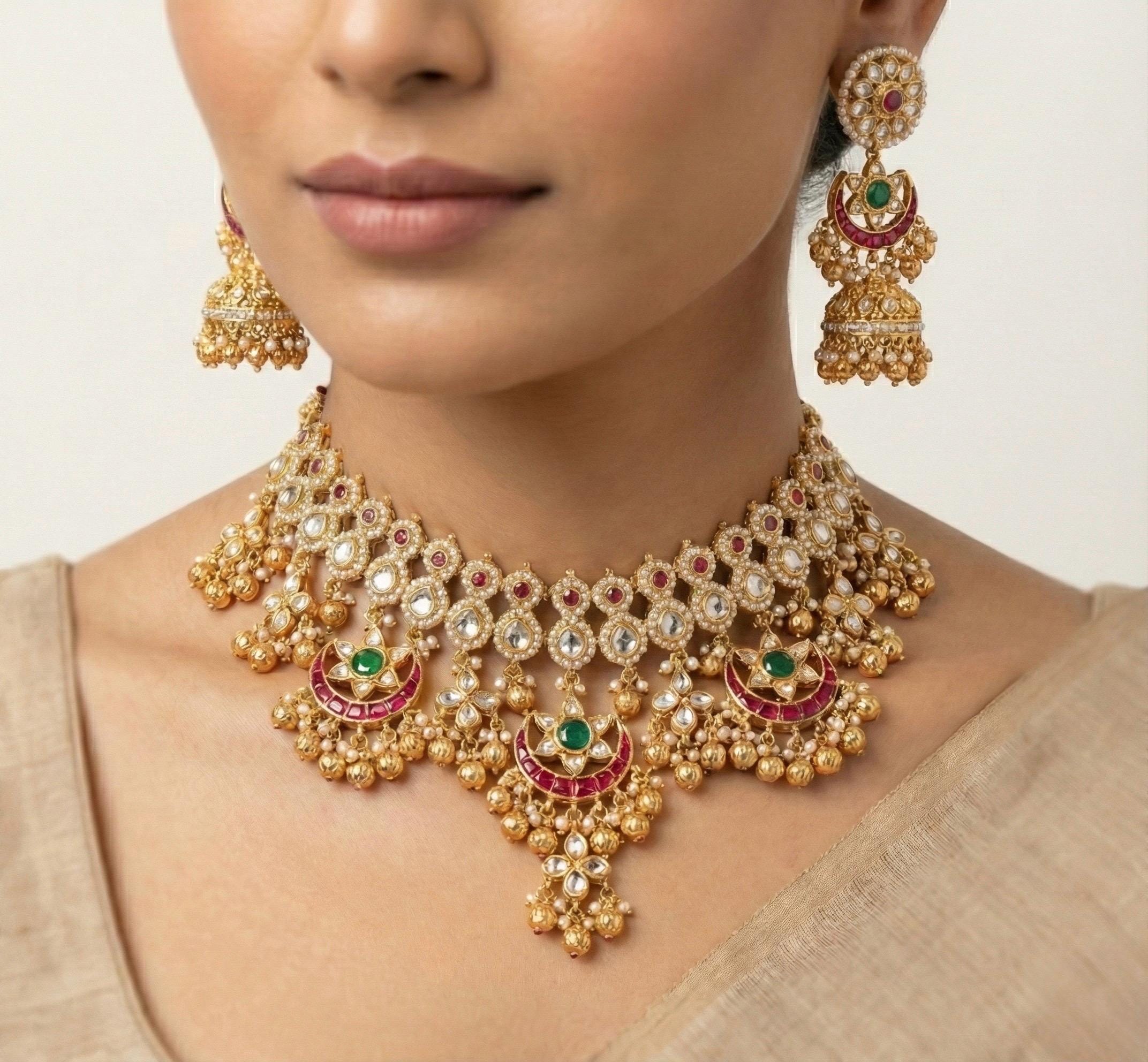A timeless bridal masterpiece handcrafted in traditional Indian Kundan artistry.