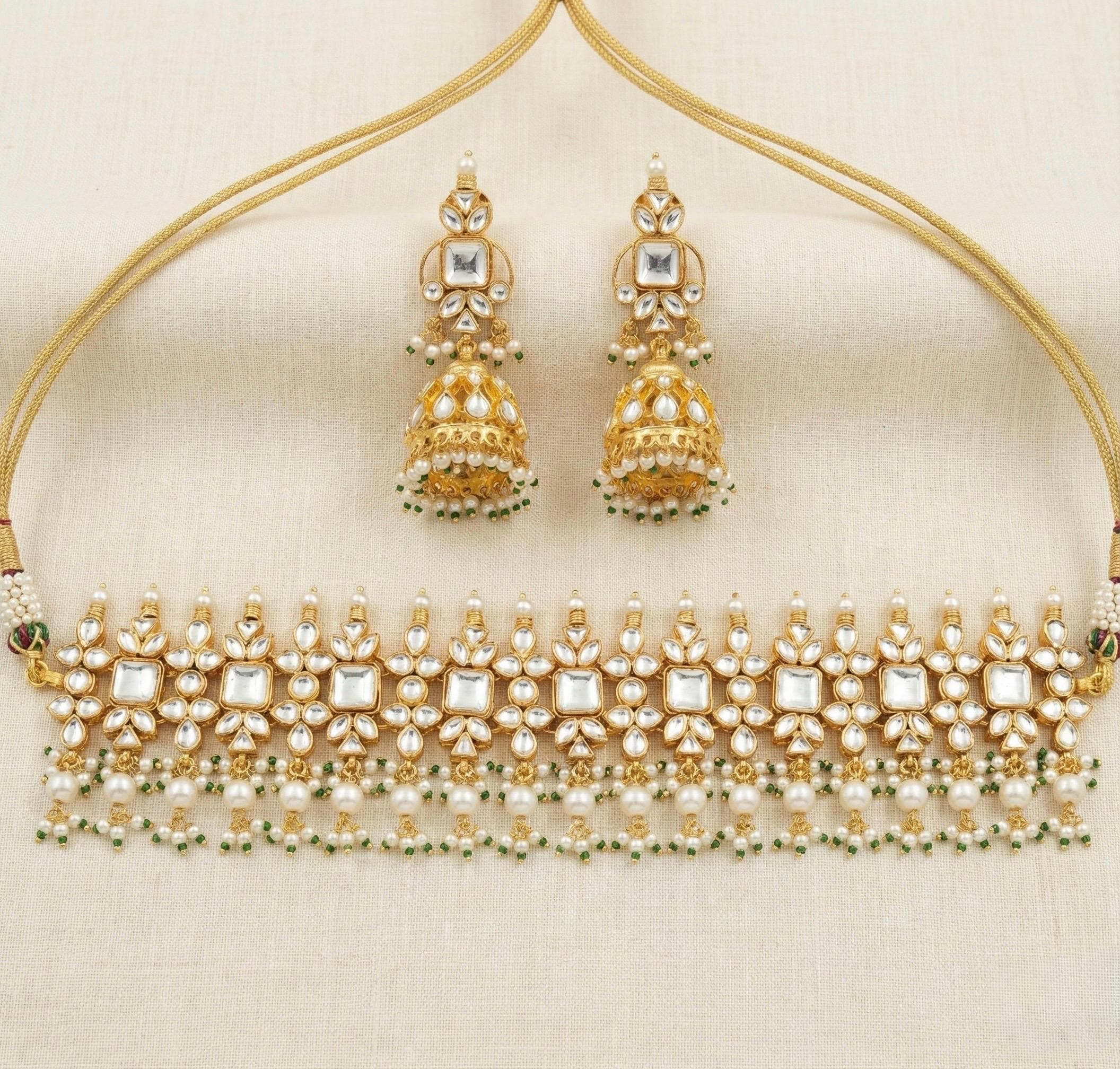 • Handmade Gold Plated Indian Kundan Jewelry Choker Necklace and Earrings Set.