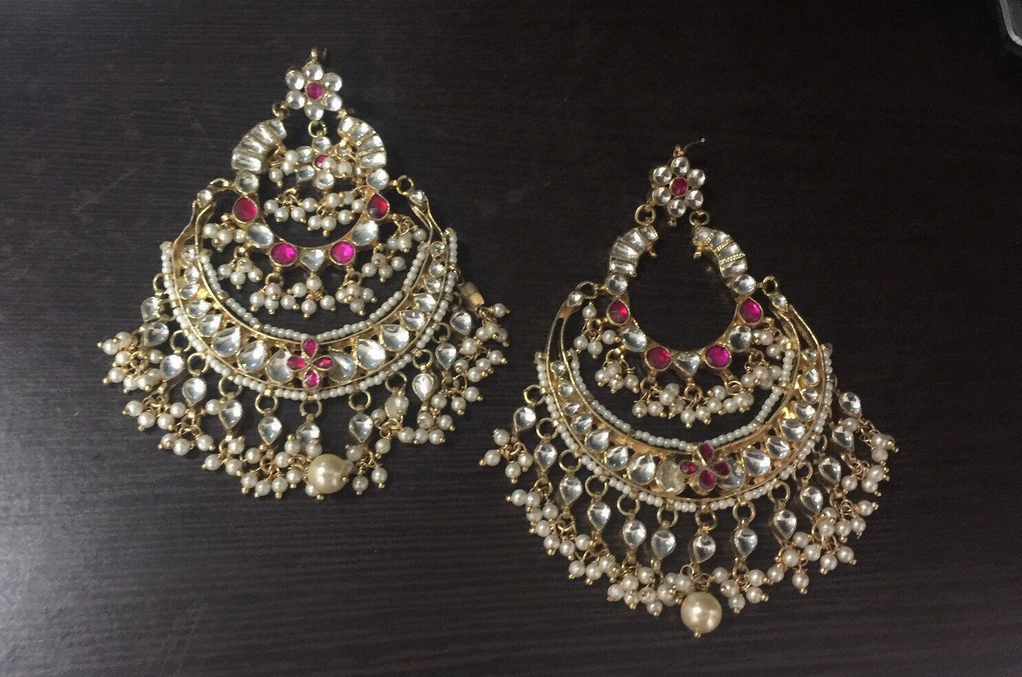 • It’s Handmade Indian Ethnic Kundan Chandbali Earrings with Pearl drop.