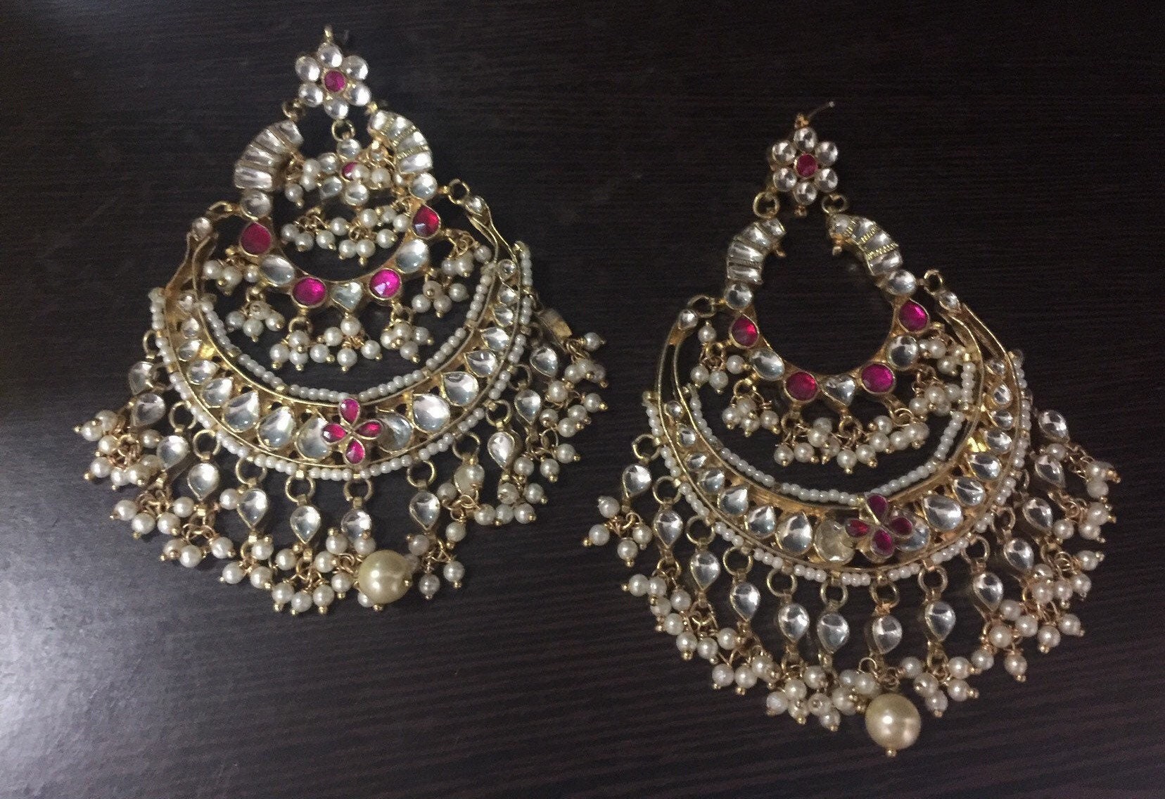 Indian Kundan Jewelry Designer Chandbali Earrings Ethnic wear Gold Tone Chand Bali for Indian Women and perfect match for all Bridal Outfits.