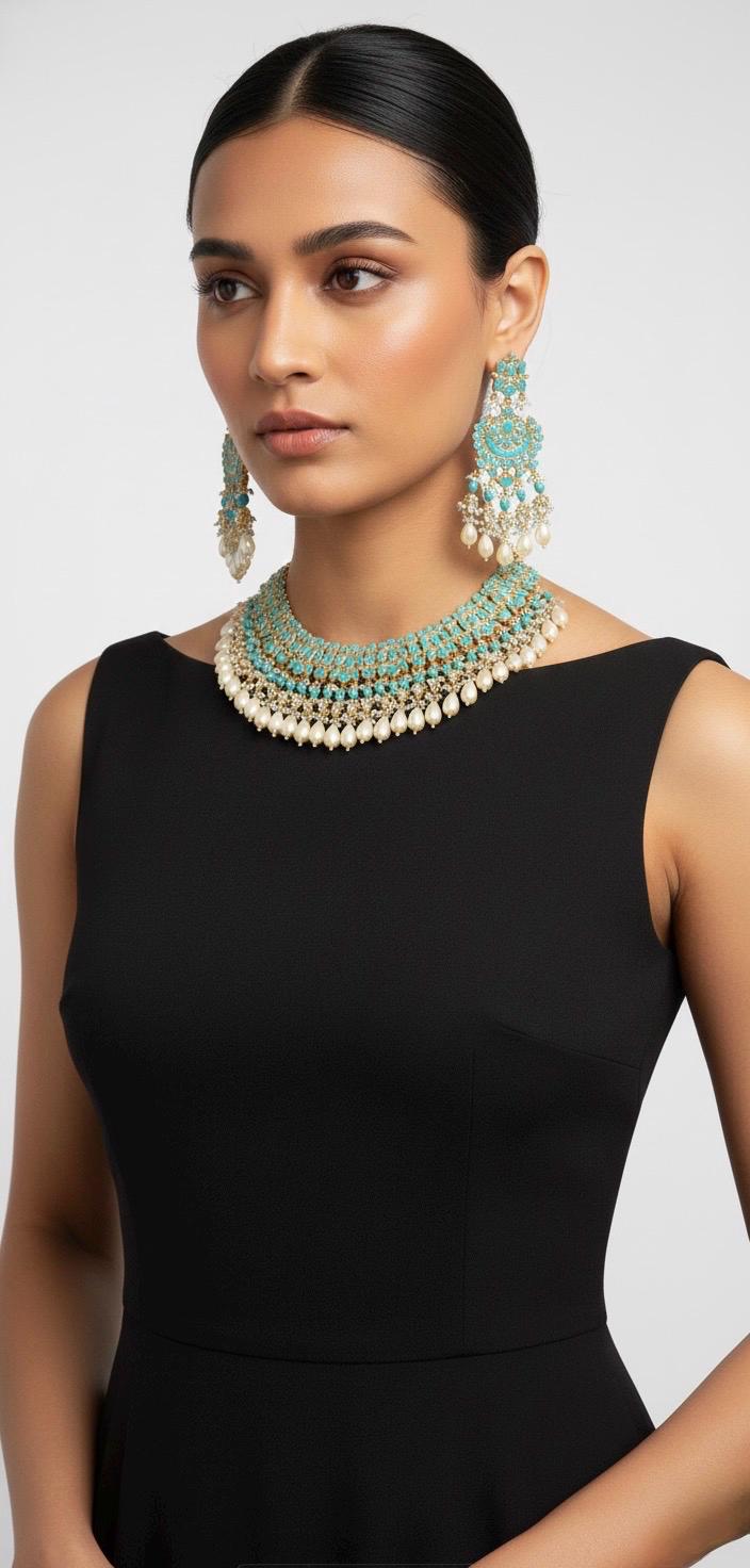 • Its beautiful Ethnic Indian Wedding Choker with Statement Earrings.