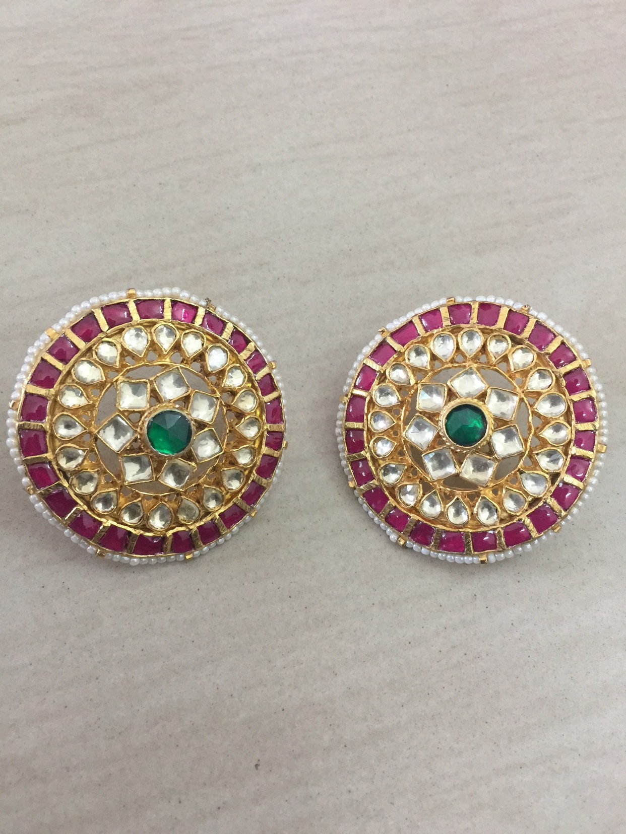 • It is Handmade Indian Ethnic Kundan Earrings with Multi Color Kundan giving Royal look.