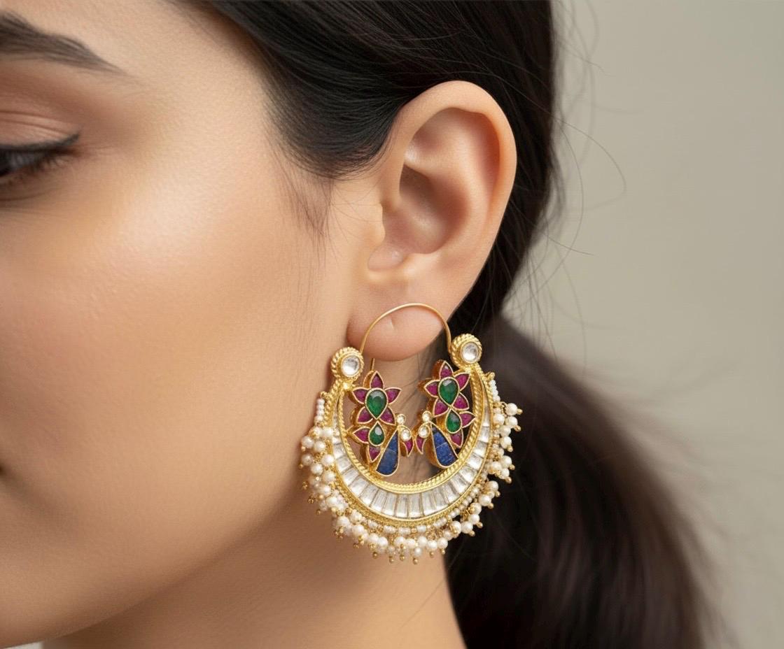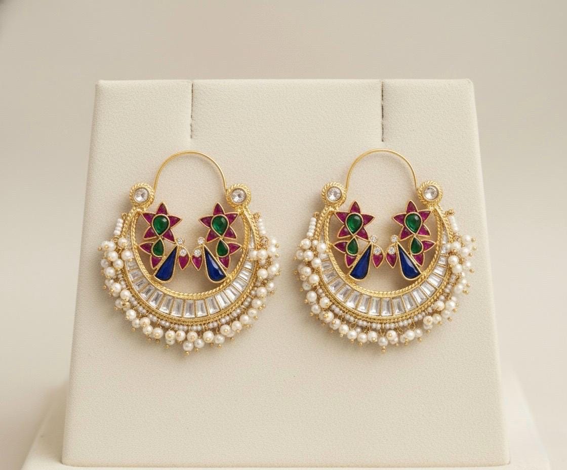 • It is Handmade Indian Ethnic Kundan Chandbali Earrings.