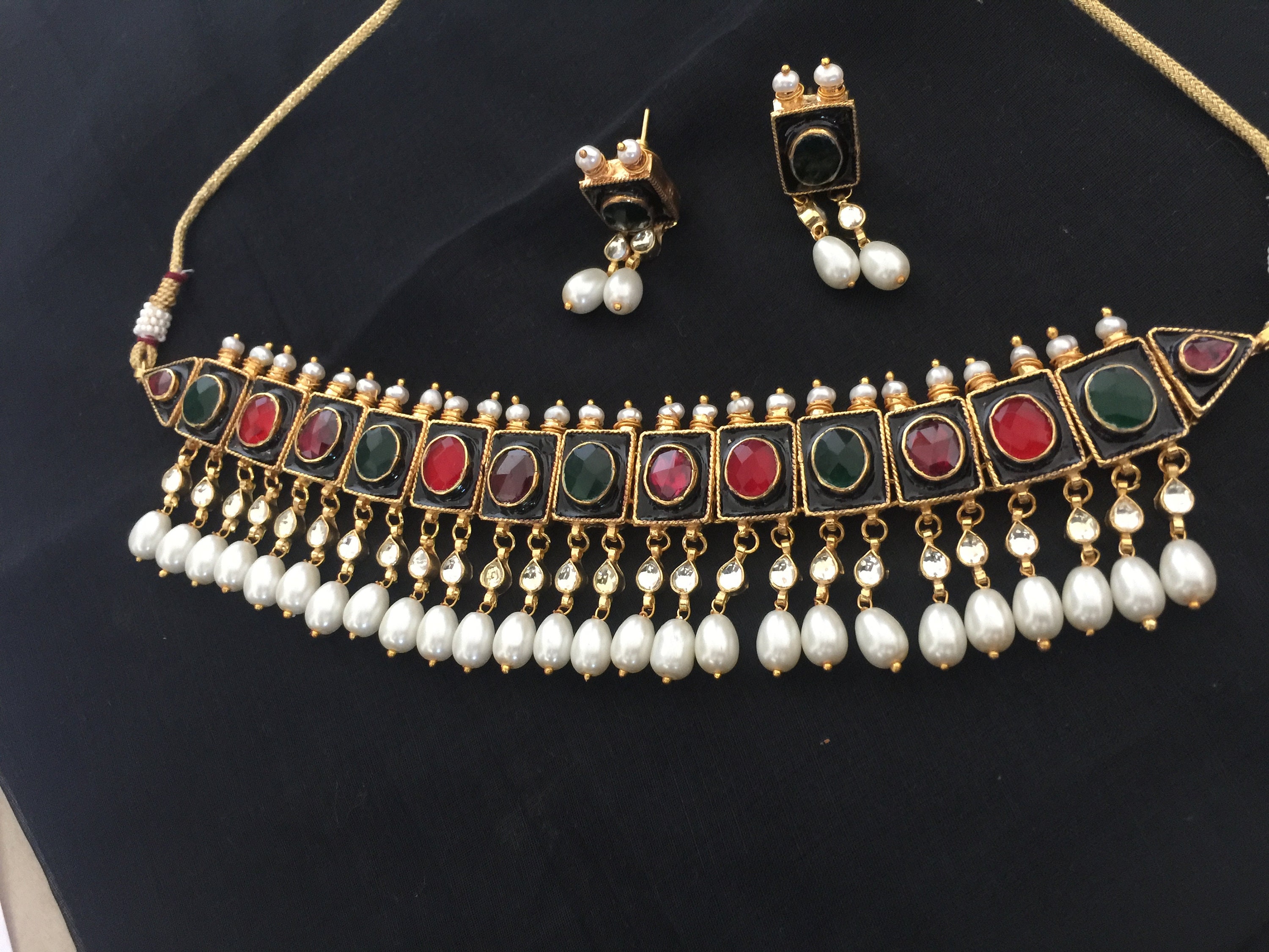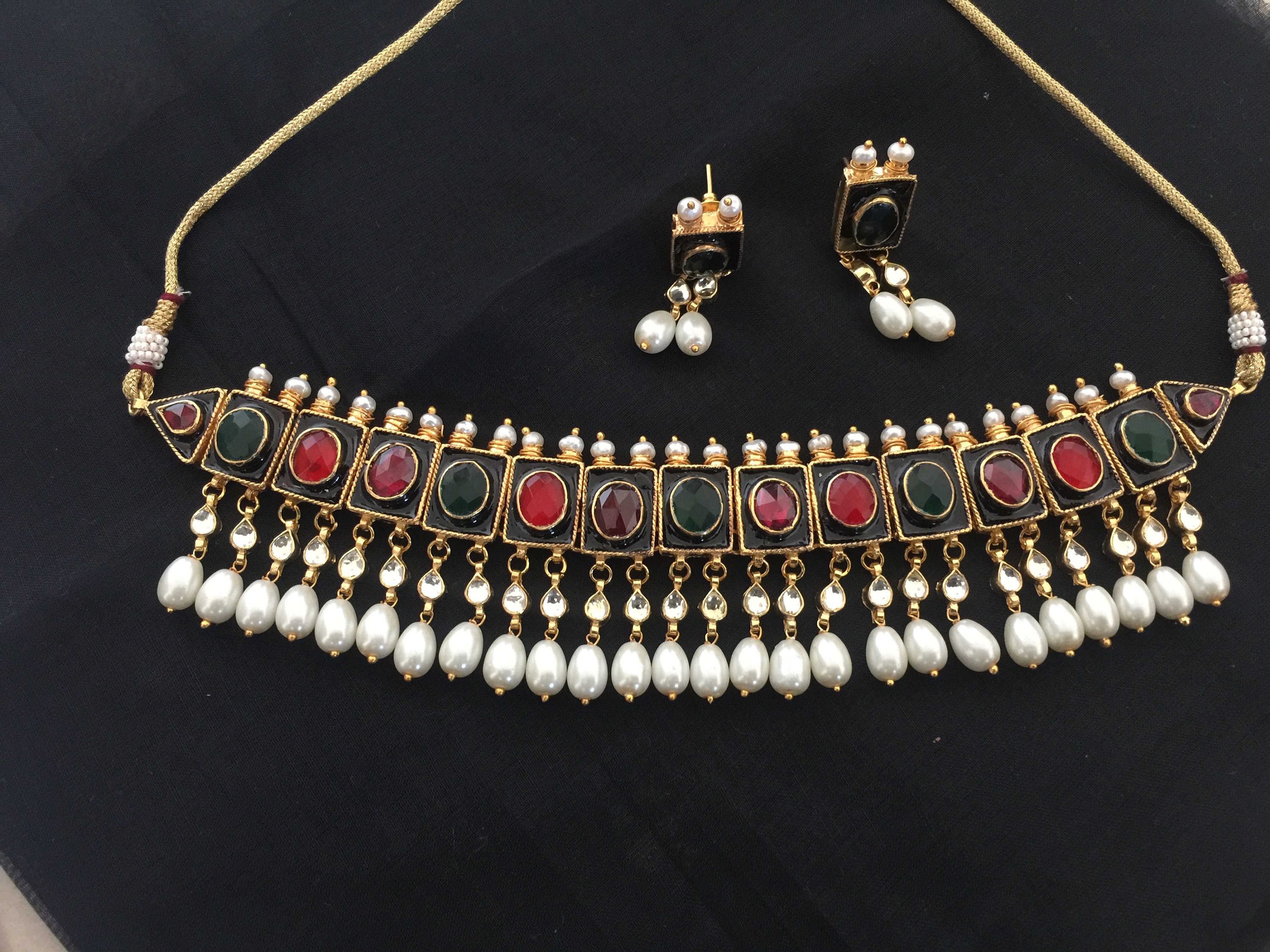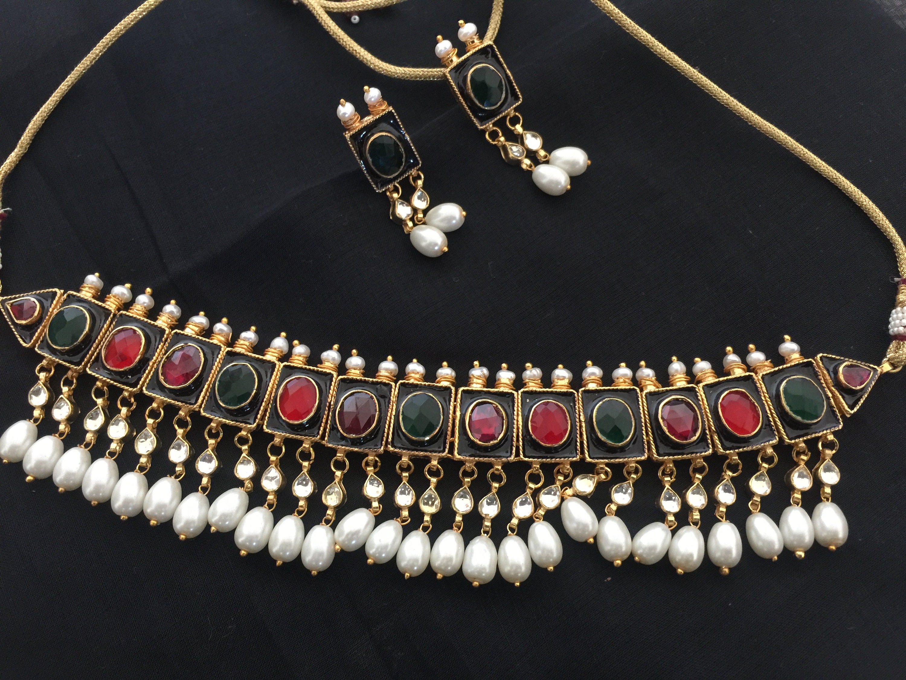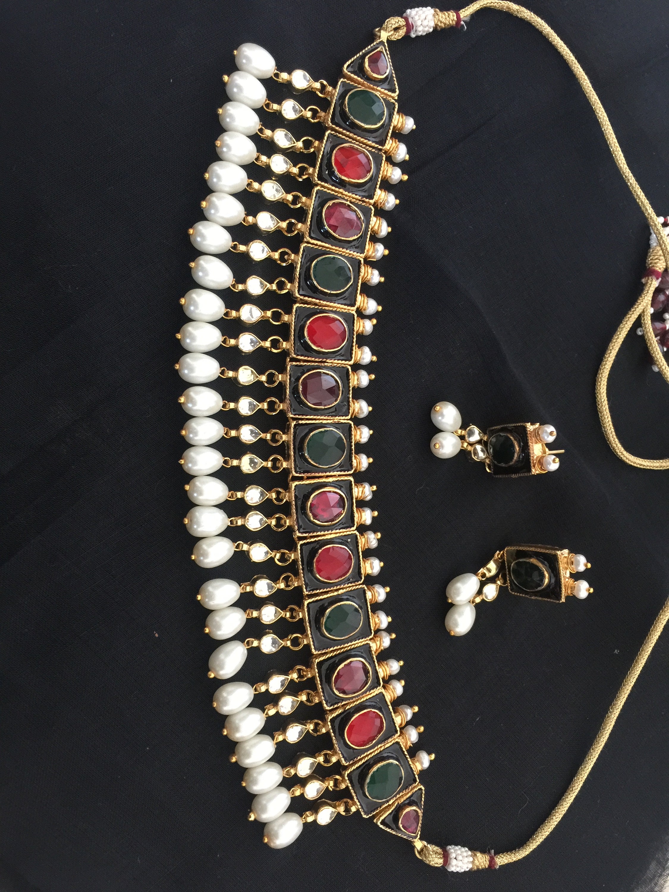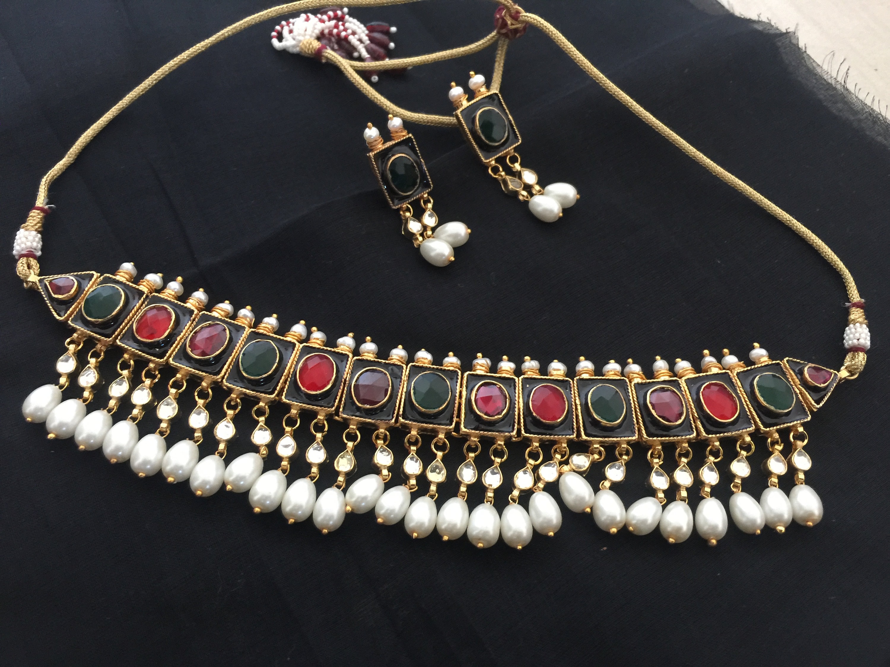 • It is a beautiful Ethnic Multi Color Wedding Choker with Black Enamel and Statement Earrings.