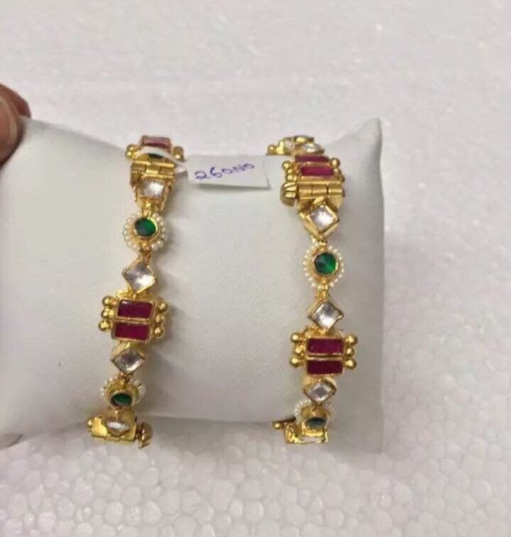 • This is Gold Finish Kundan Bangles pair.Its Perfect for Wedding Occasion as well as Unique and Ethnic Traditional Bangle to gift and Also Bridal wear to match with Wedding Outfits.