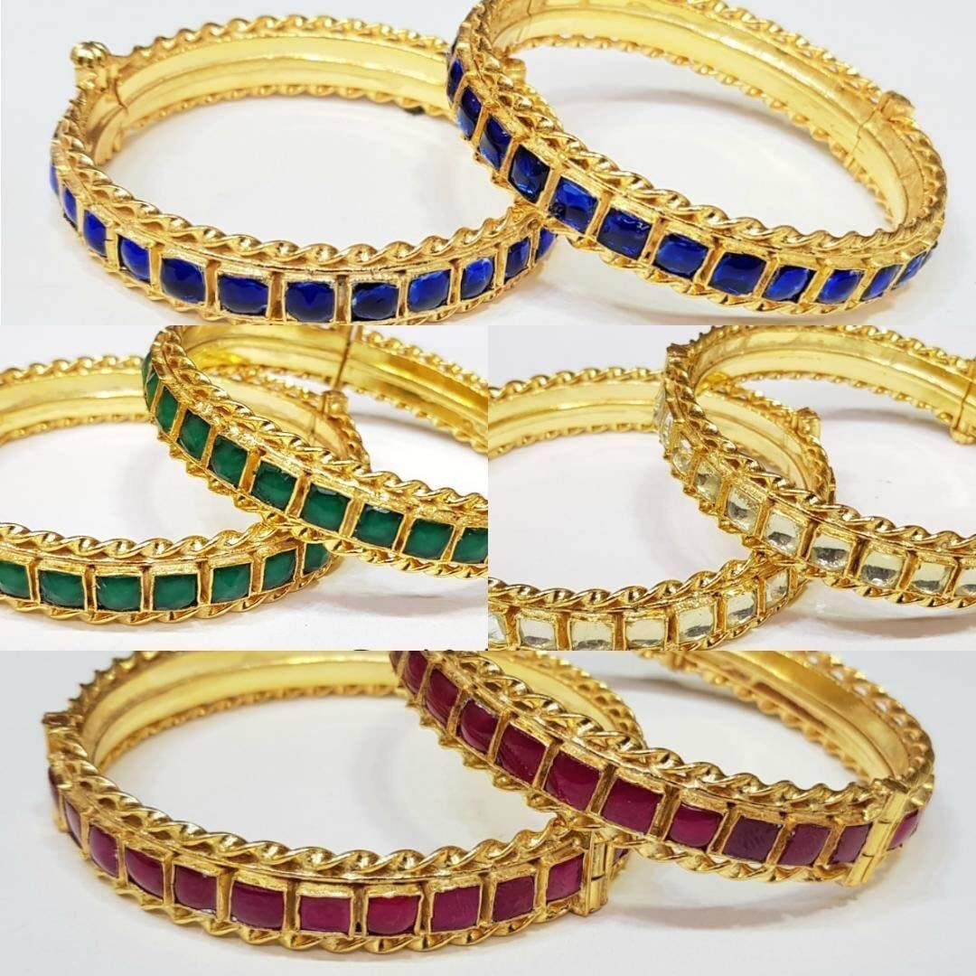 • This is Gold Finish Kundan Bangles Pair.Its Perfect for Wedding Occasion as well as Unique and Ethnic Traditional Bangle to gift and Also Bridal wear to match with Wedding Outfits.