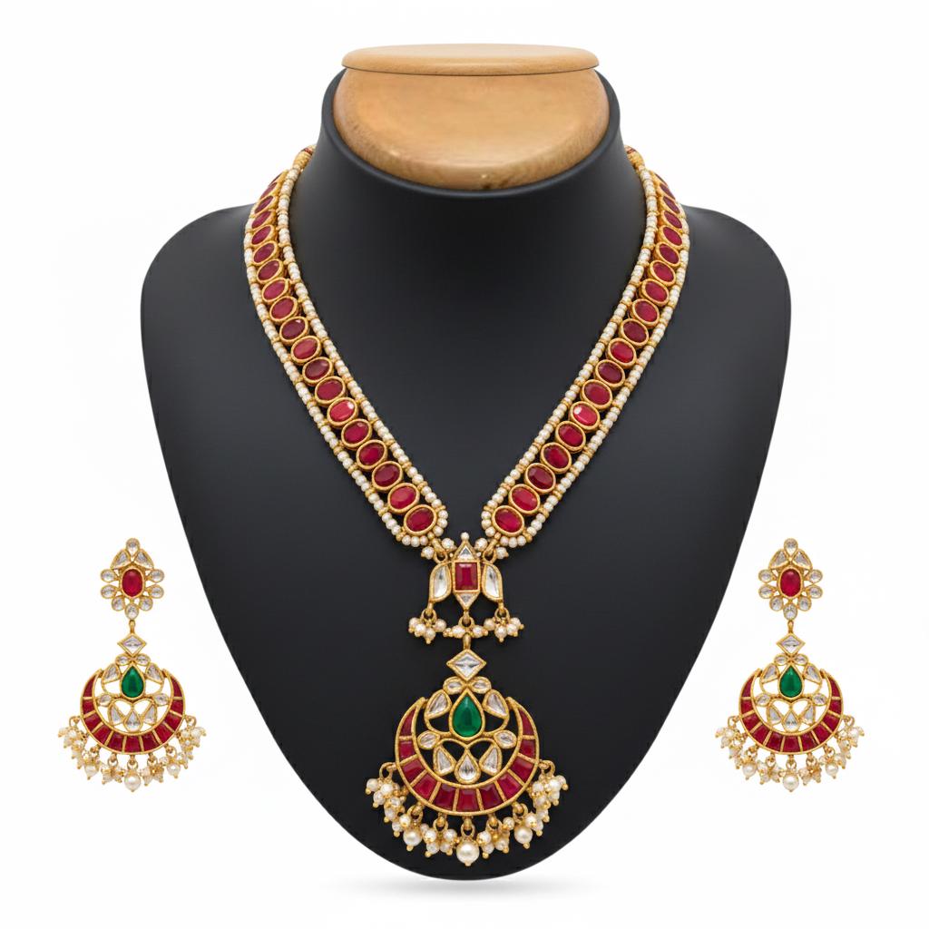 • Handmade Gold Plated Indian Kundan Jewelry Necklace and Earrings Set.