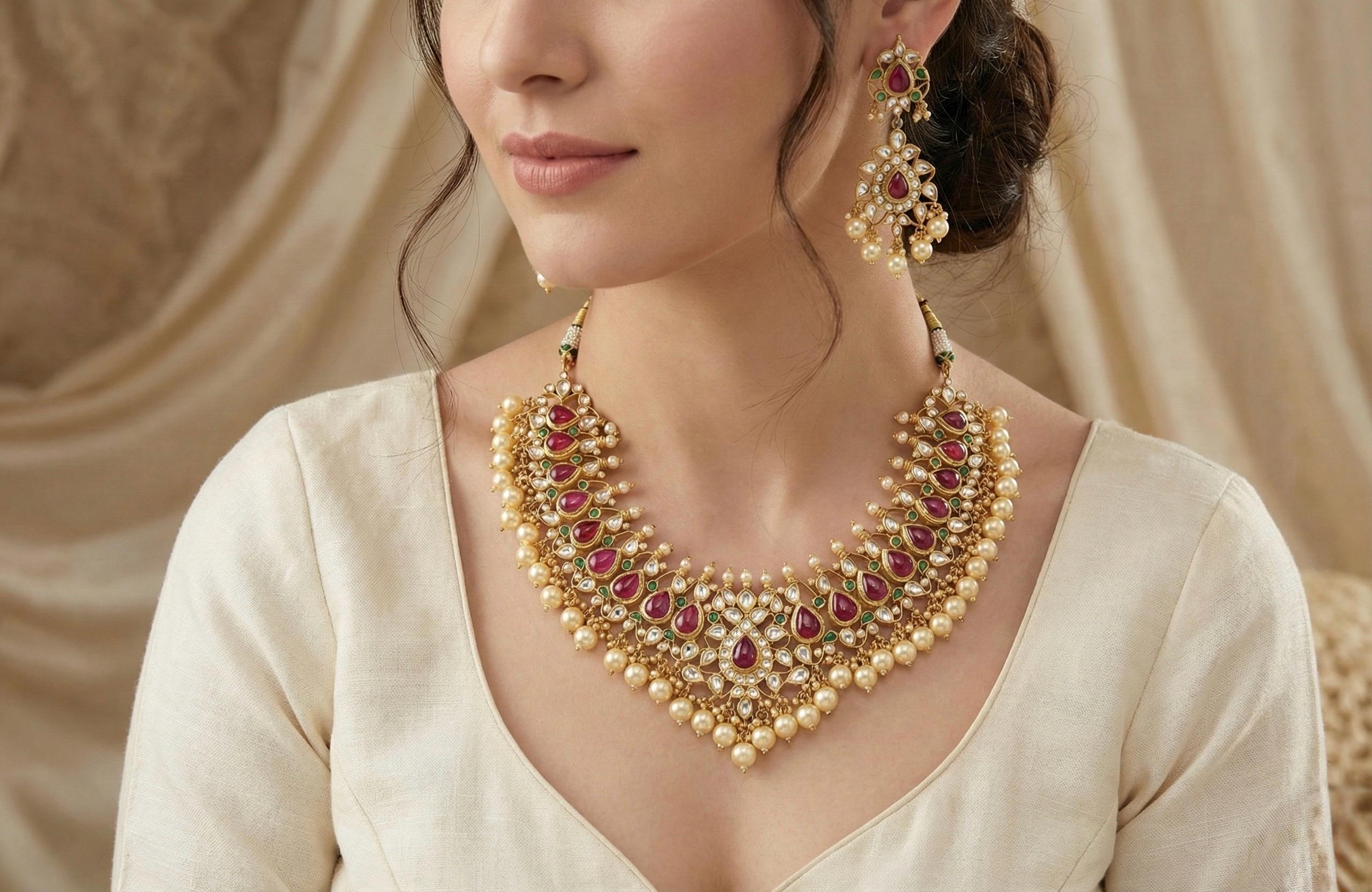 We are also providing custom made jewelry according to dress color and wedding requirements including designer pieces replication of custom design. You can contact us for custom requirement by providing your designs for Kundan Jewelry. We will be happy to replicate it according to customer demand.
