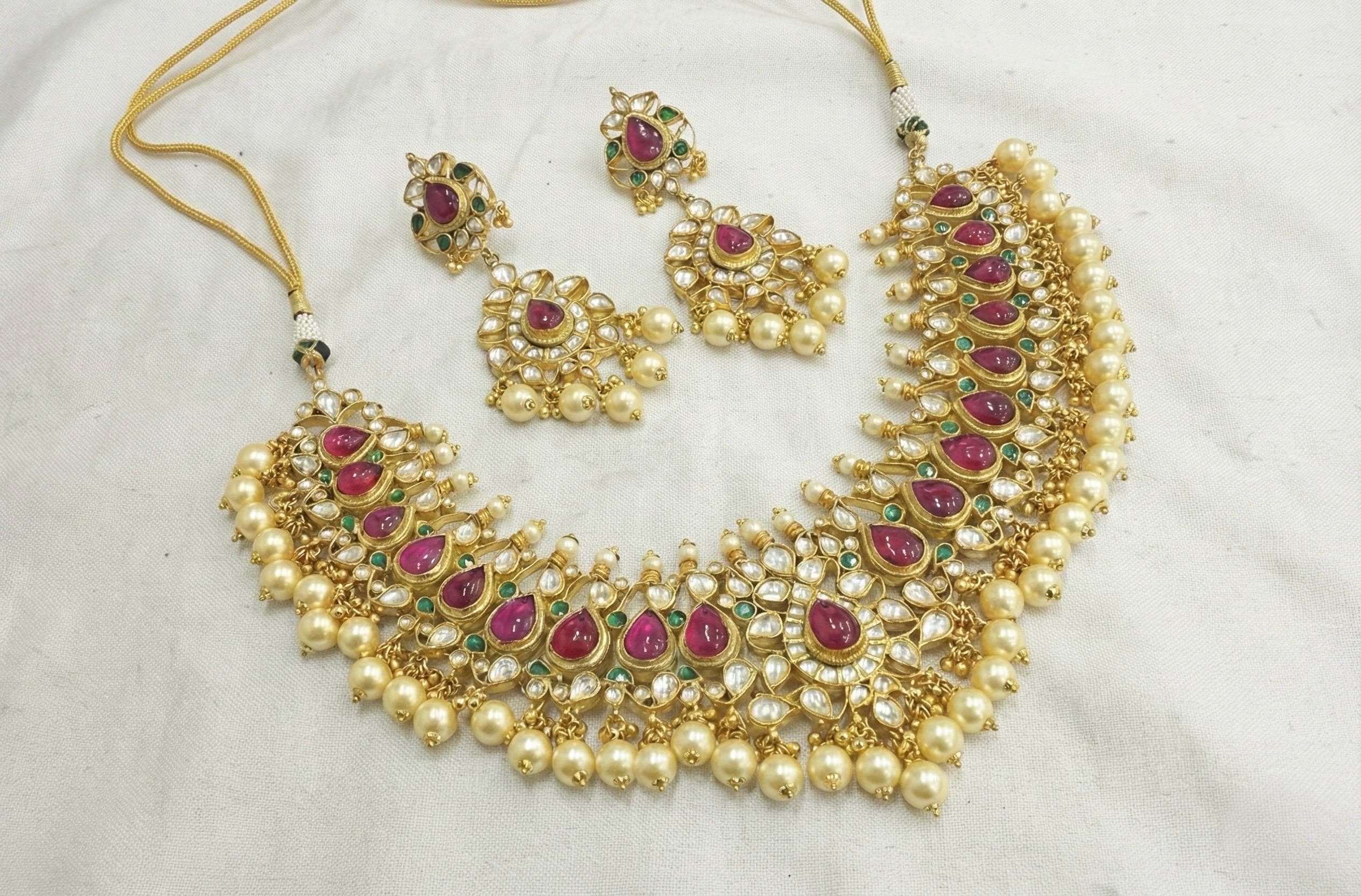 • It’s Handmade Gold Plated Indian Kundan Jewelry Necklace and Earrings Set.