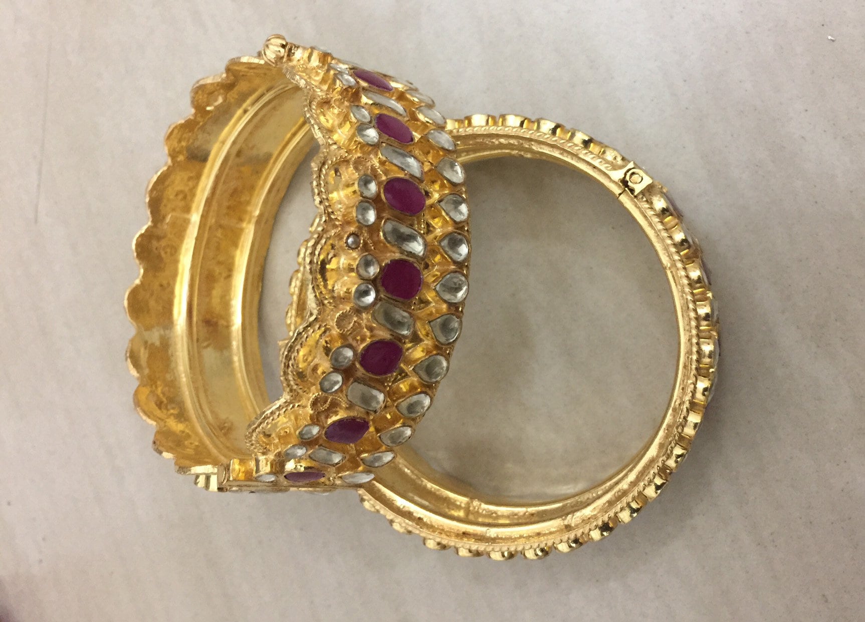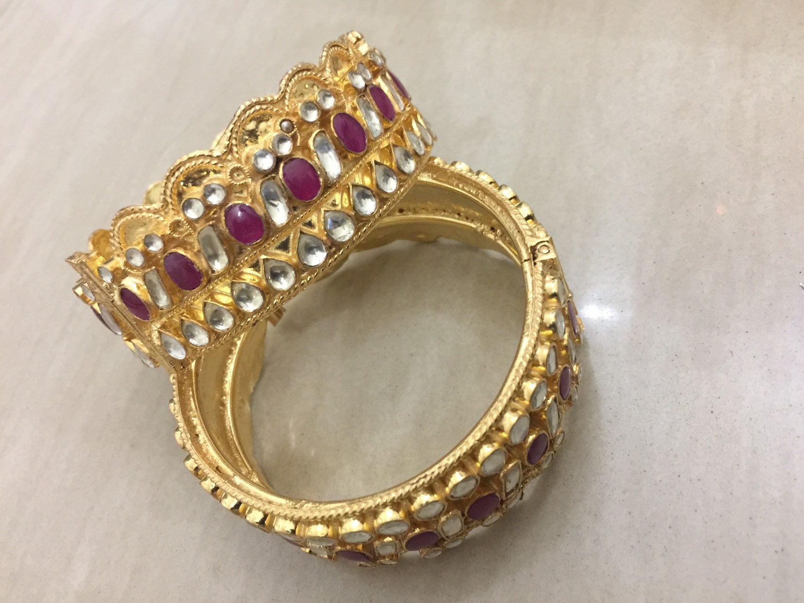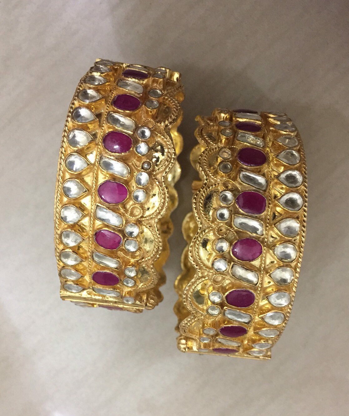 • This is 22k Gold Plated Kundan Bangles.Its perfect for Wedding Occasion as well as Gift and Bridal wear to match with Wedding Outfits.