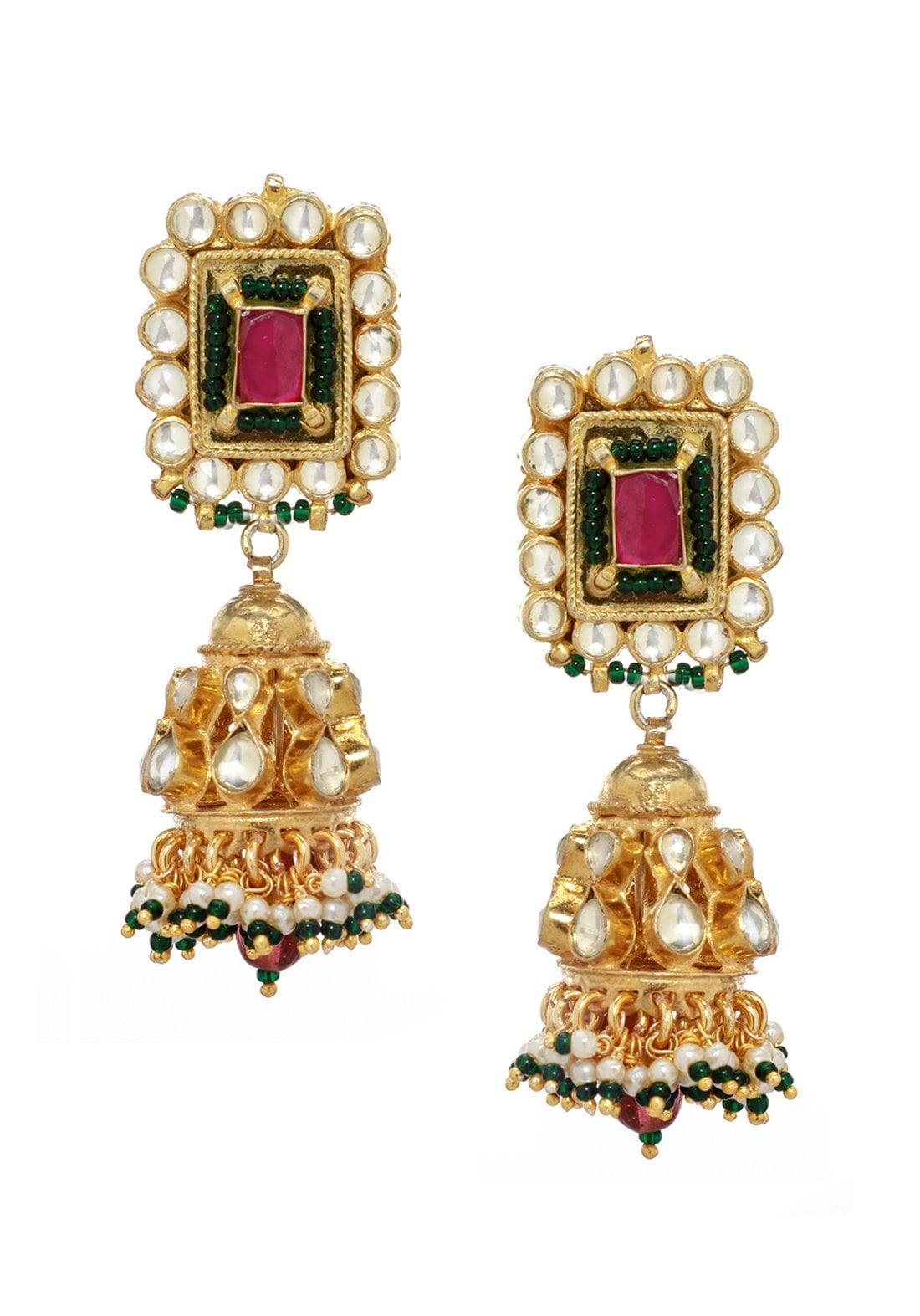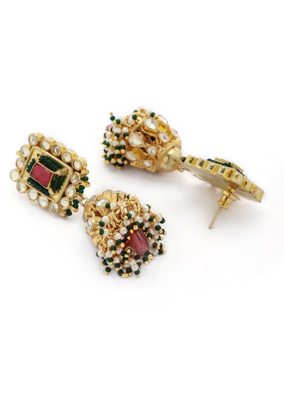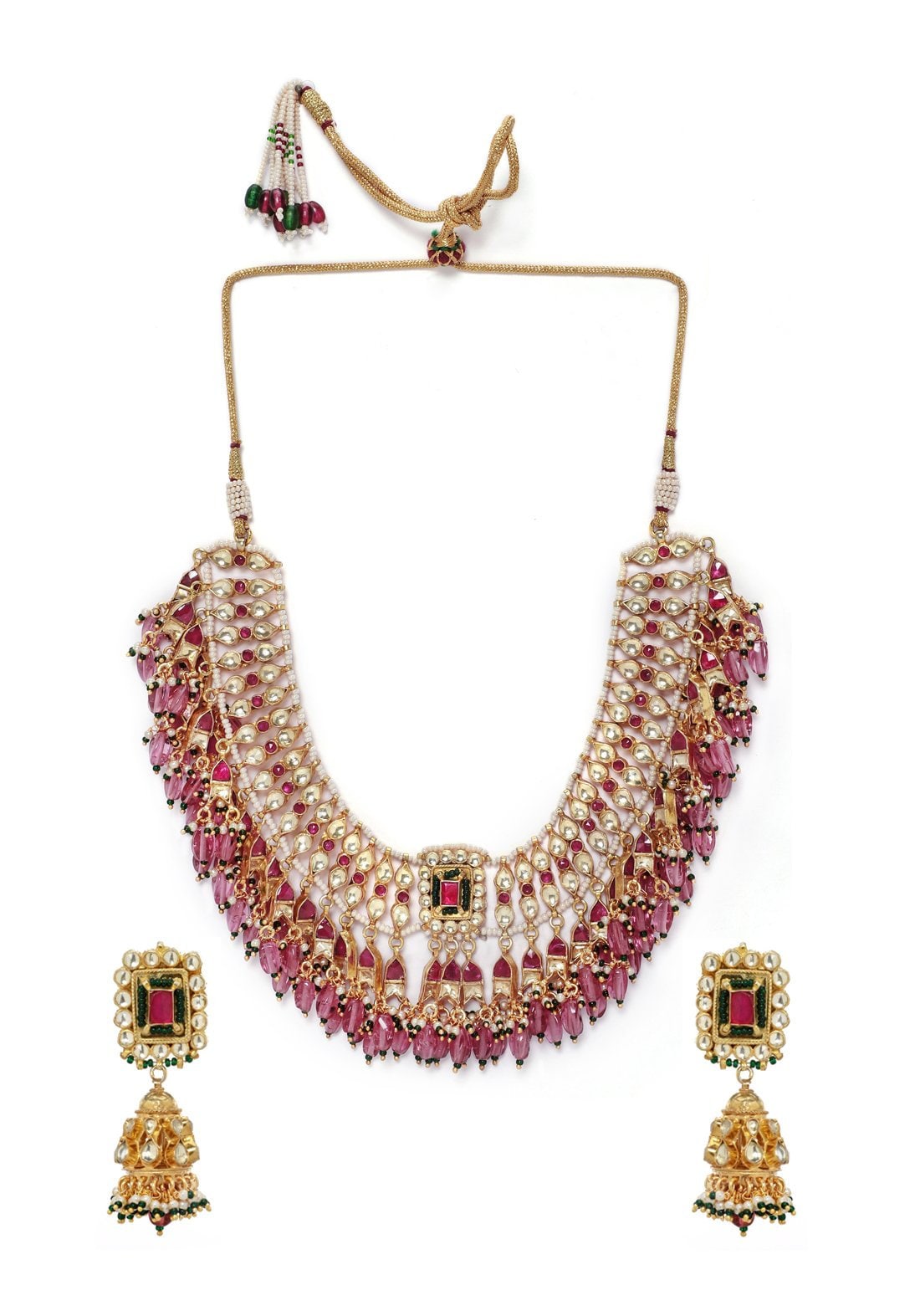 The necklace is beautifully beaded with Ruby Pink Hangings and Its earrings size is about 3 inches including Jumkhi and Exactly like shown in picture.