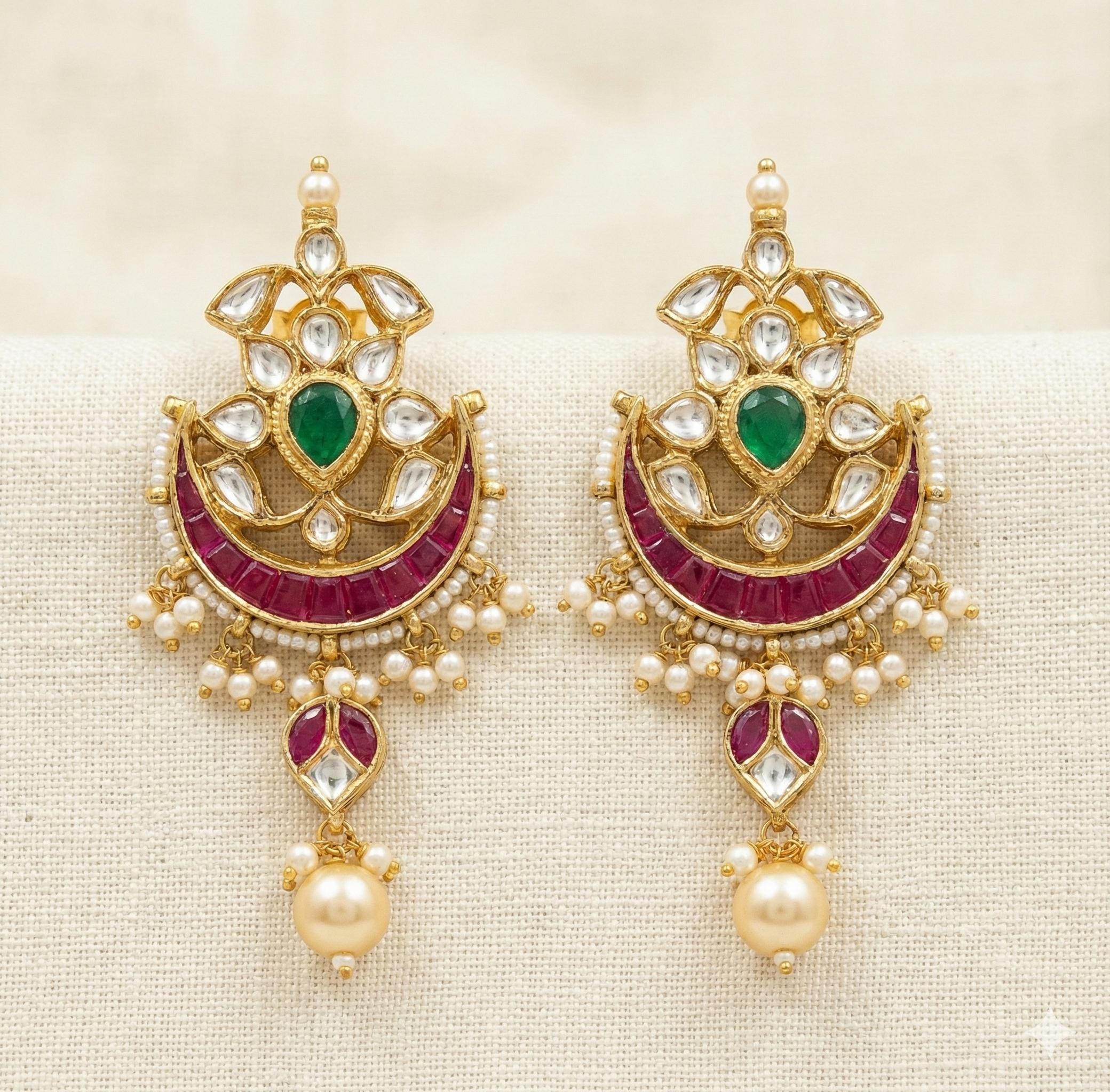 All of our Kundan Jewelry is 100% handmade and 22k Gold Plated with ancient Kundan stone setting method using silver foils. It is one of the most favorable jewelry since last some decades till present time for Indian as well as Asian Ethnic and Traditional Culture.