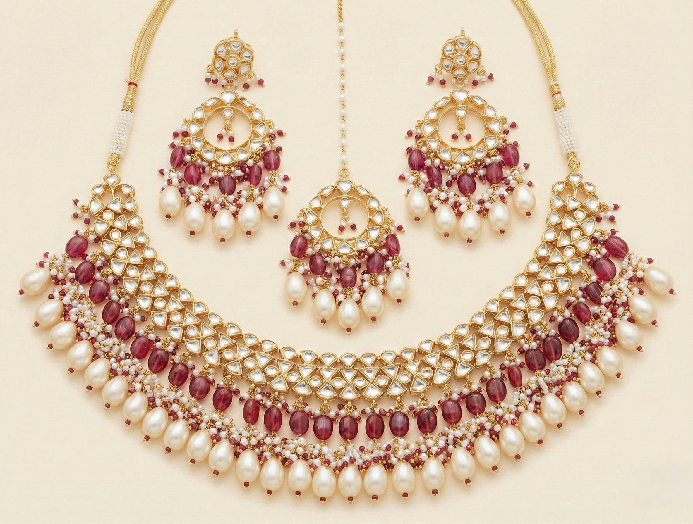 # Indian Handmade Kundan Wedding Jewelry Necklace with Earrings.
