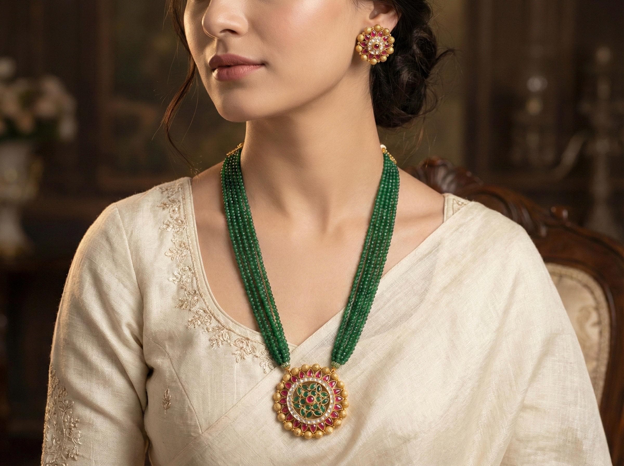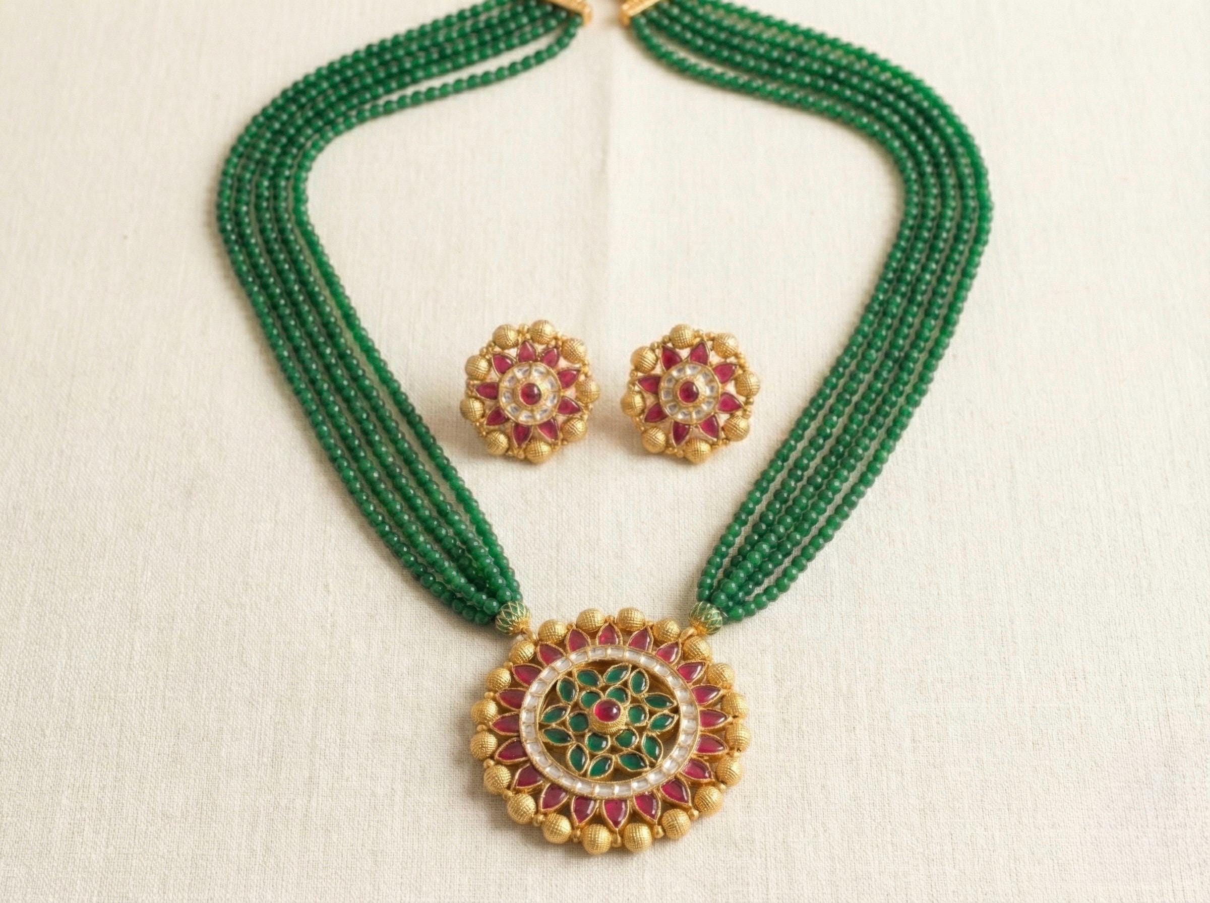 Latest Kundan Jewelry Set Indian Kundan Pendant Necklace with Earrings Set for South Indian as well as Pakistani Brides and Weddings.