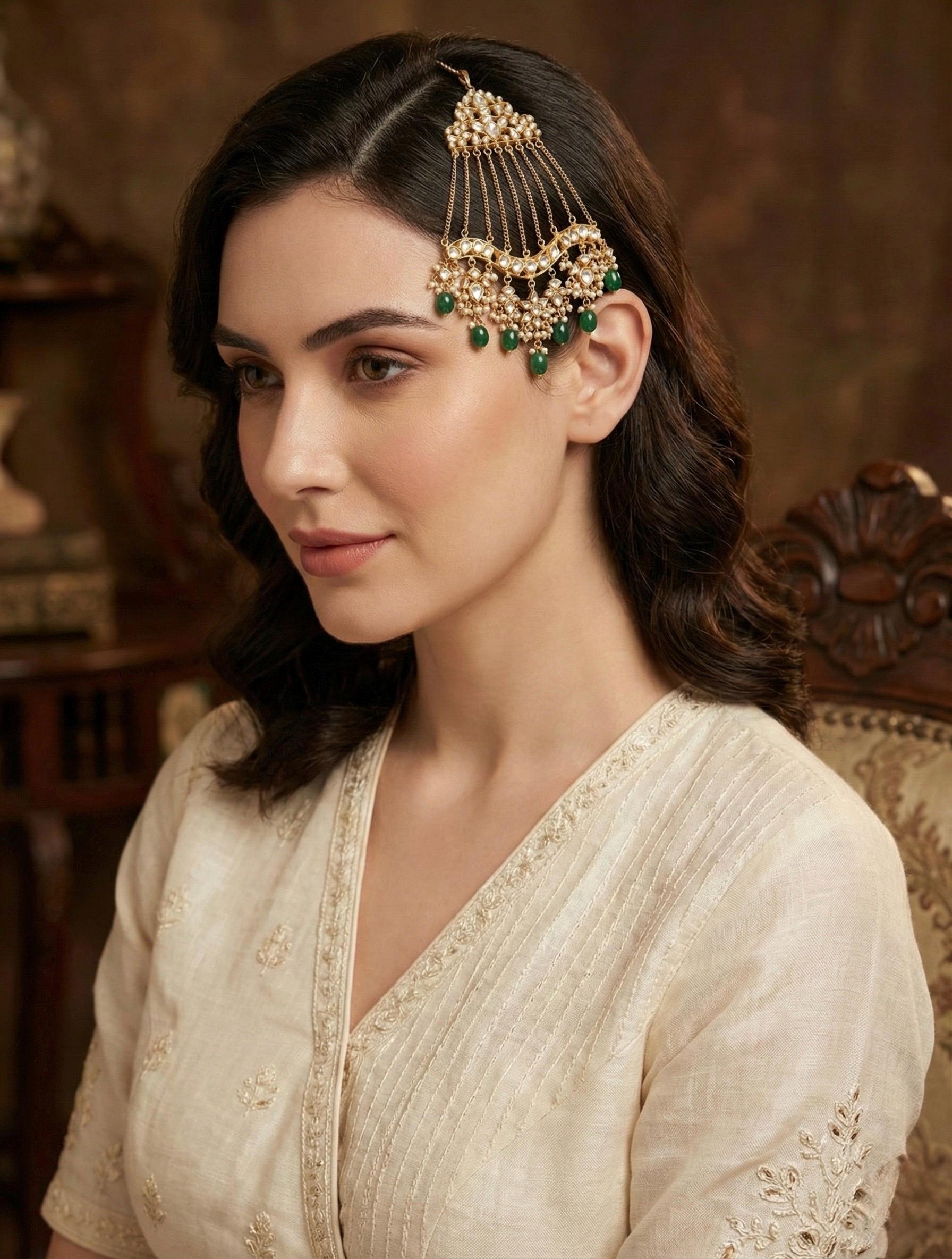• Handmade Kundan Jhoomer Passa Mangtikka for Indian and Pakistani Brides.