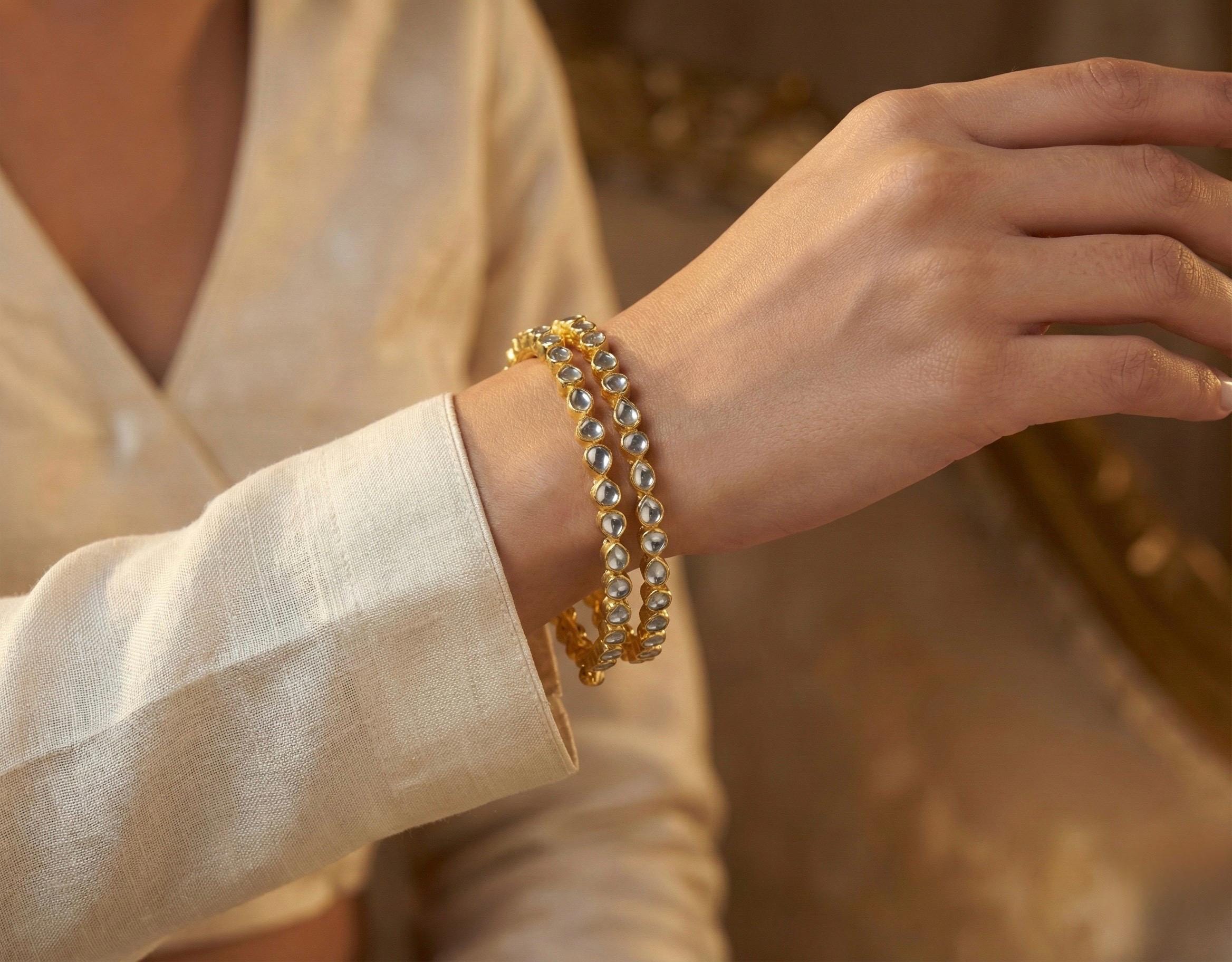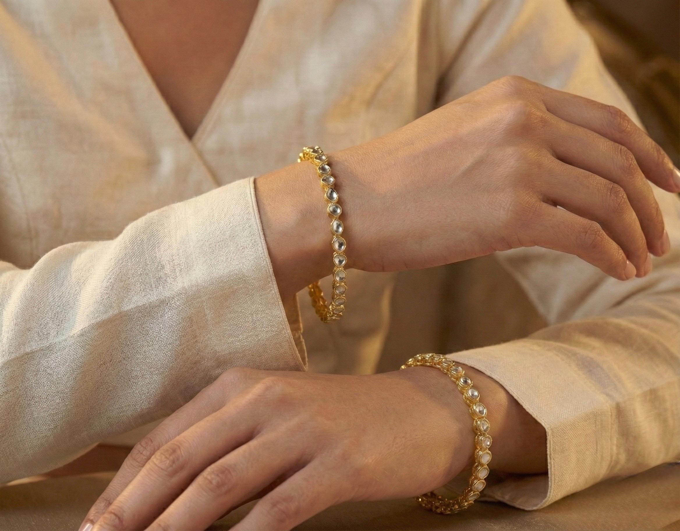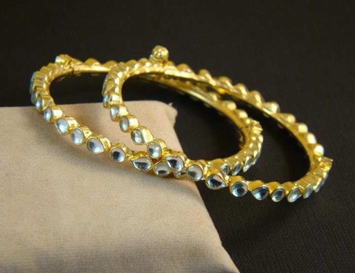 • This is Gold Finish Kundan Bangles Pair.Its Perfect for Wedding Occasion as well as Unique and Ethnic Traditional Bangle to gift and Also Bridal wear to match with Wedding Outfits.