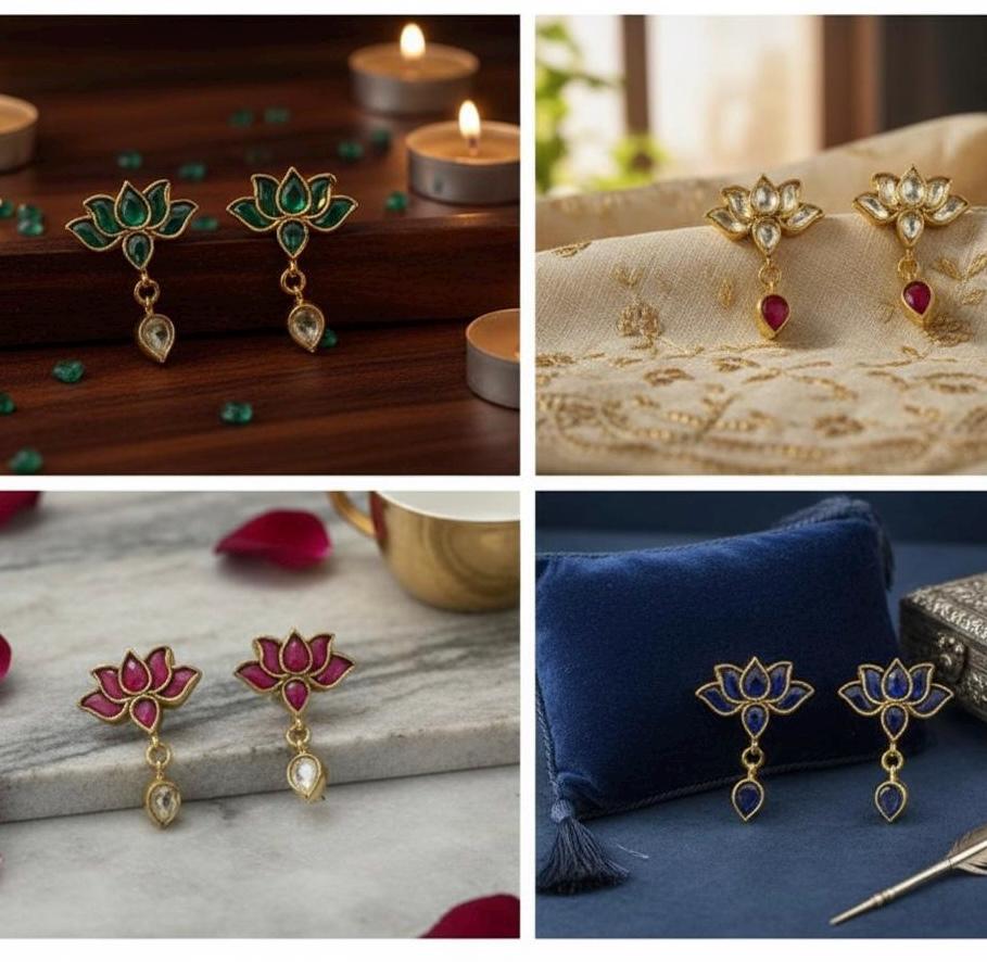 • It’s Handmade Indian Ethnic Kundan Stud and will come as set of shown 4 colours pair Pink,Green, Blue and Golden clear Kundan.