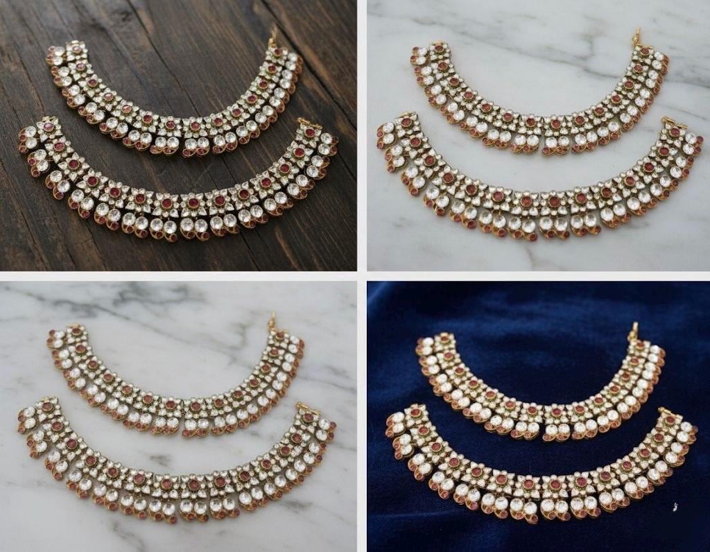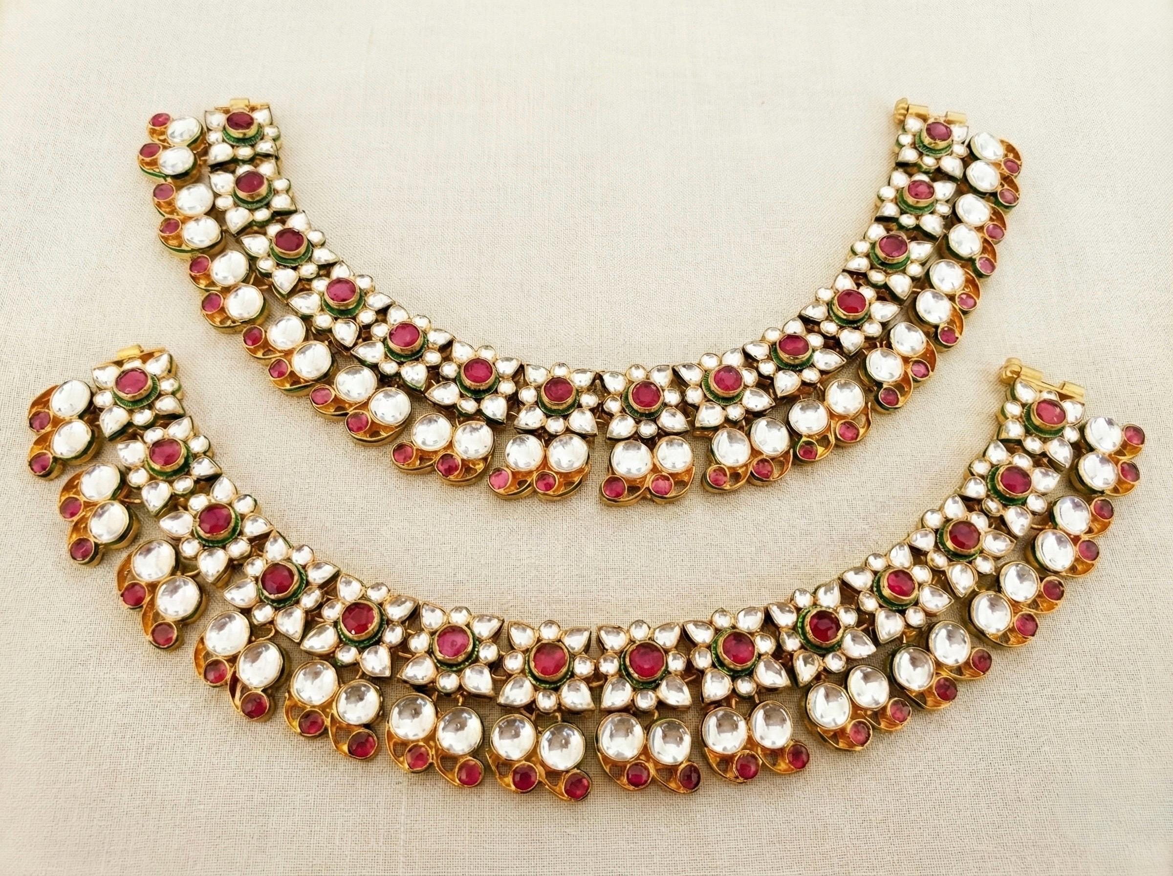 • Indian Traditional Antique Kundan Jewelry Bridal Anklet Pair with 22k gold plating.