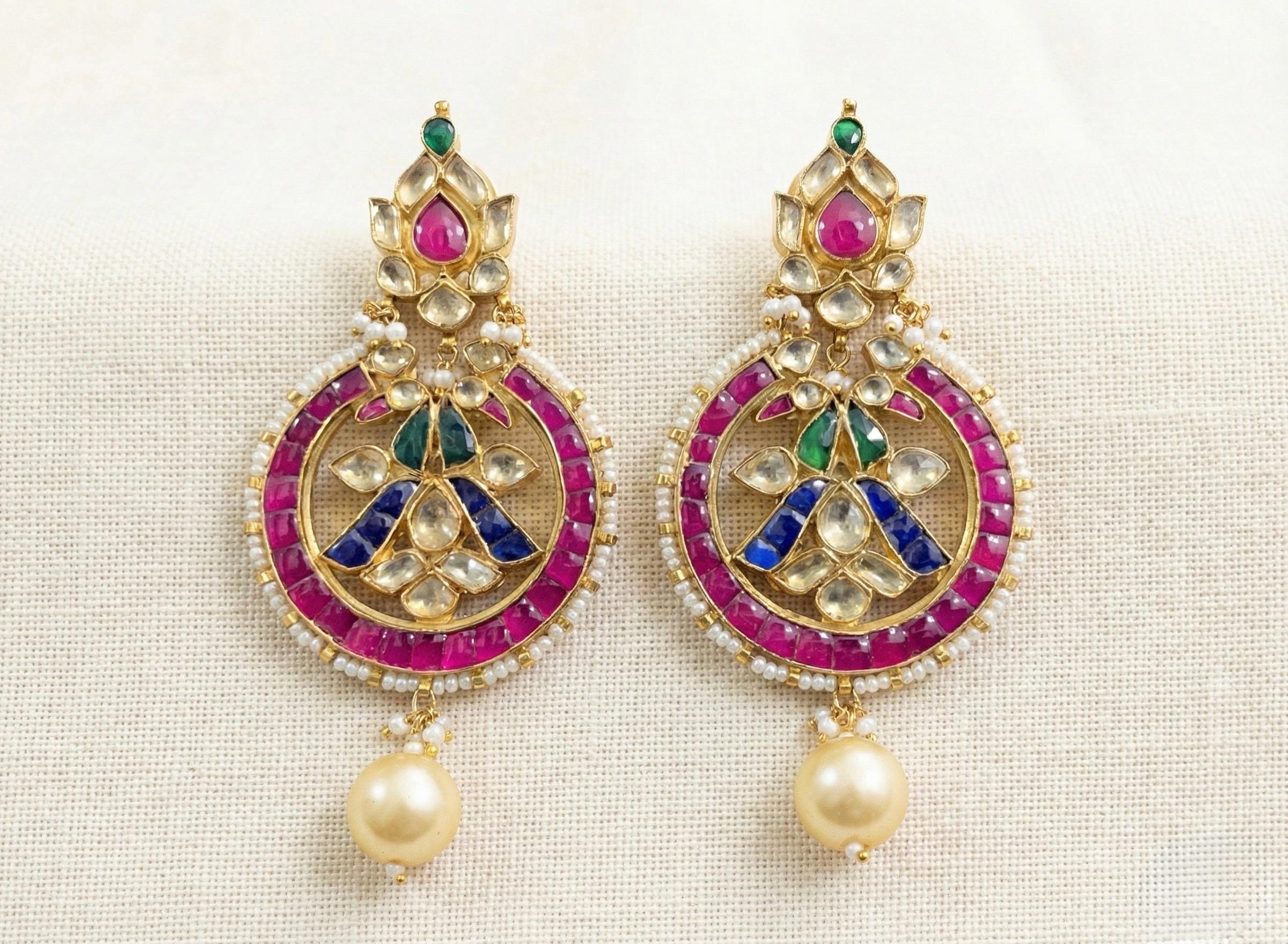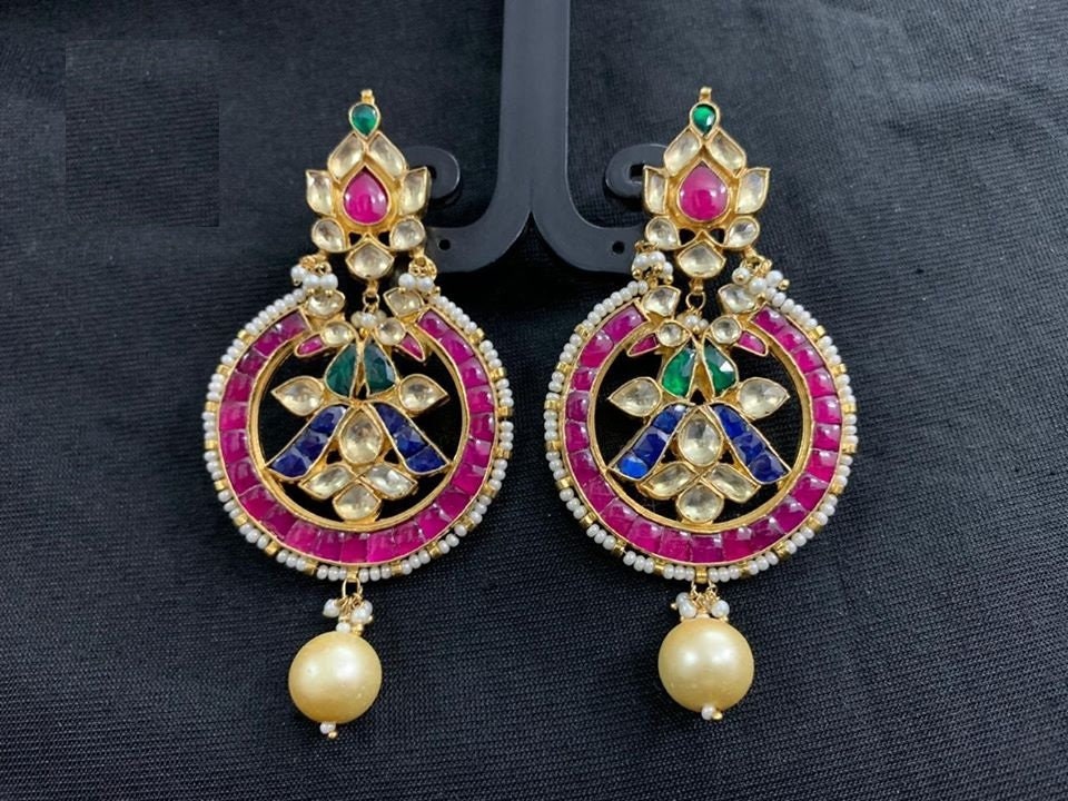 • It’s Handmade Indian Ethnic Kundan Jewelry.Designer Earrings with Blue Pink Combination like shown in picture.