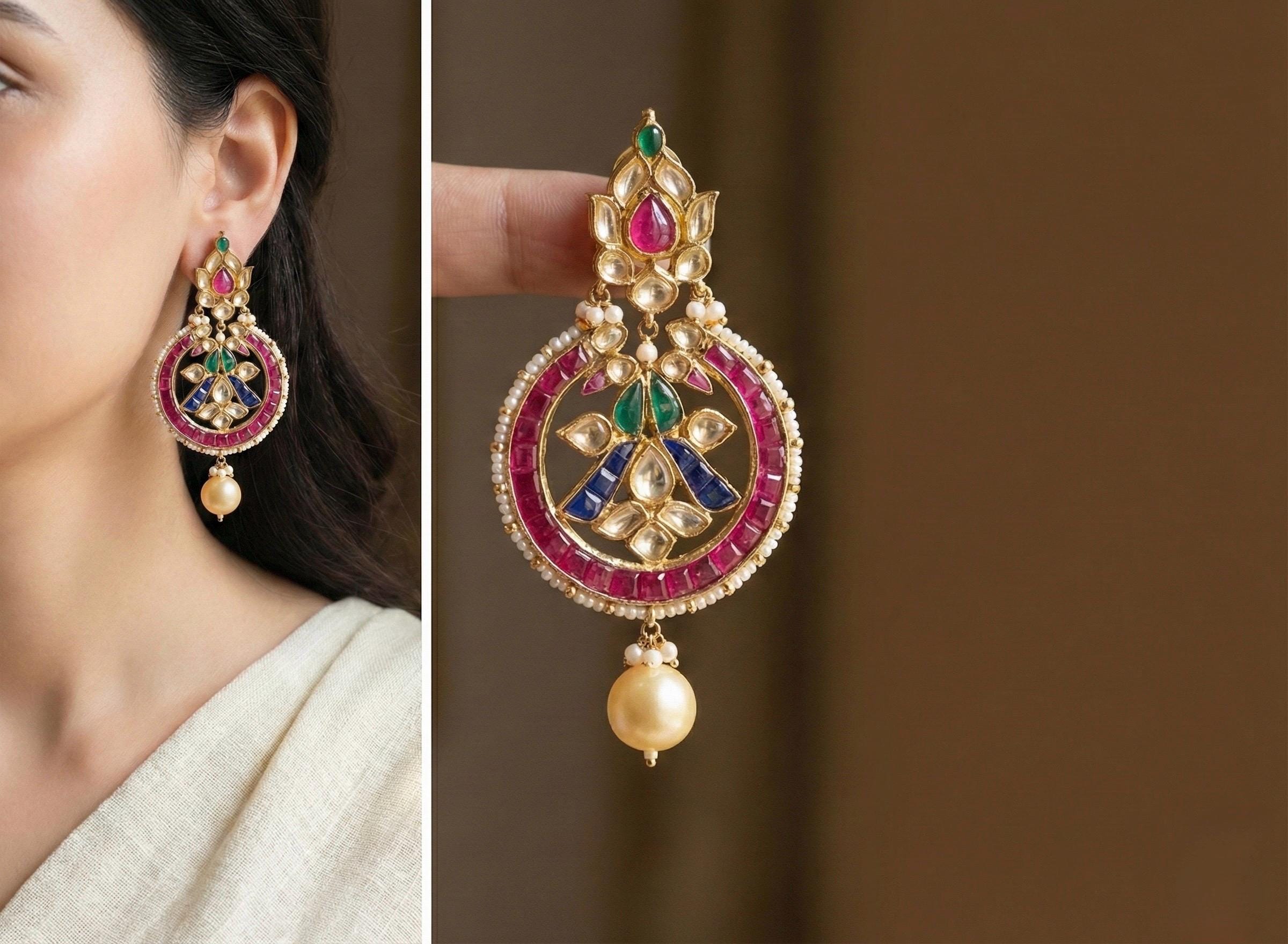• It is Real Kundan Design with Antique Peacock Kundan Setted and 3 inch long with Pearls.