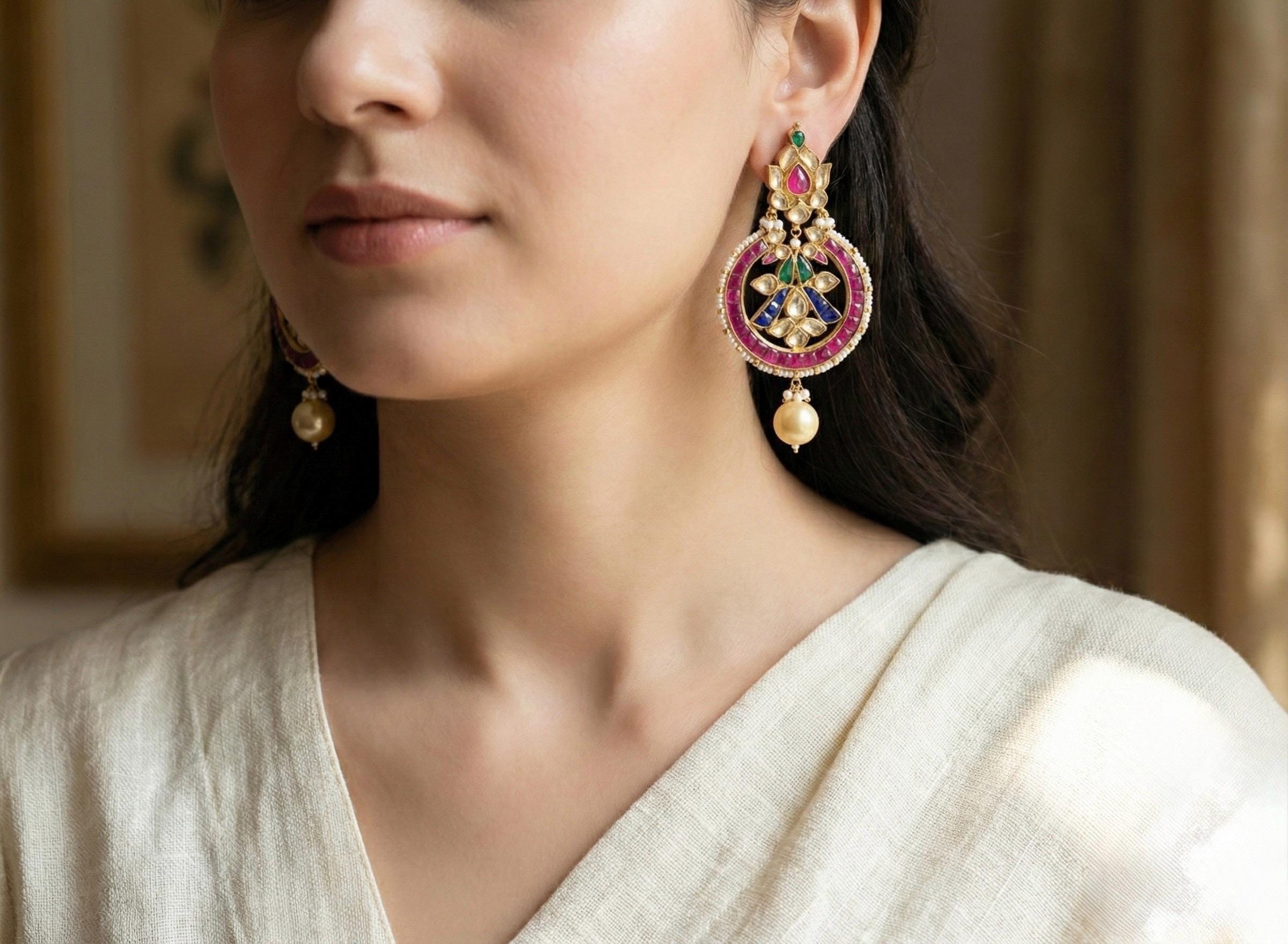 All of our Kundan Jewelry is 100% handmade with ancient Kundan stone setting method using silver foils. It is one of the most favorable jewelry since last some decades till present time for Indian as well as Asian Ethnic and Traditional Culture.