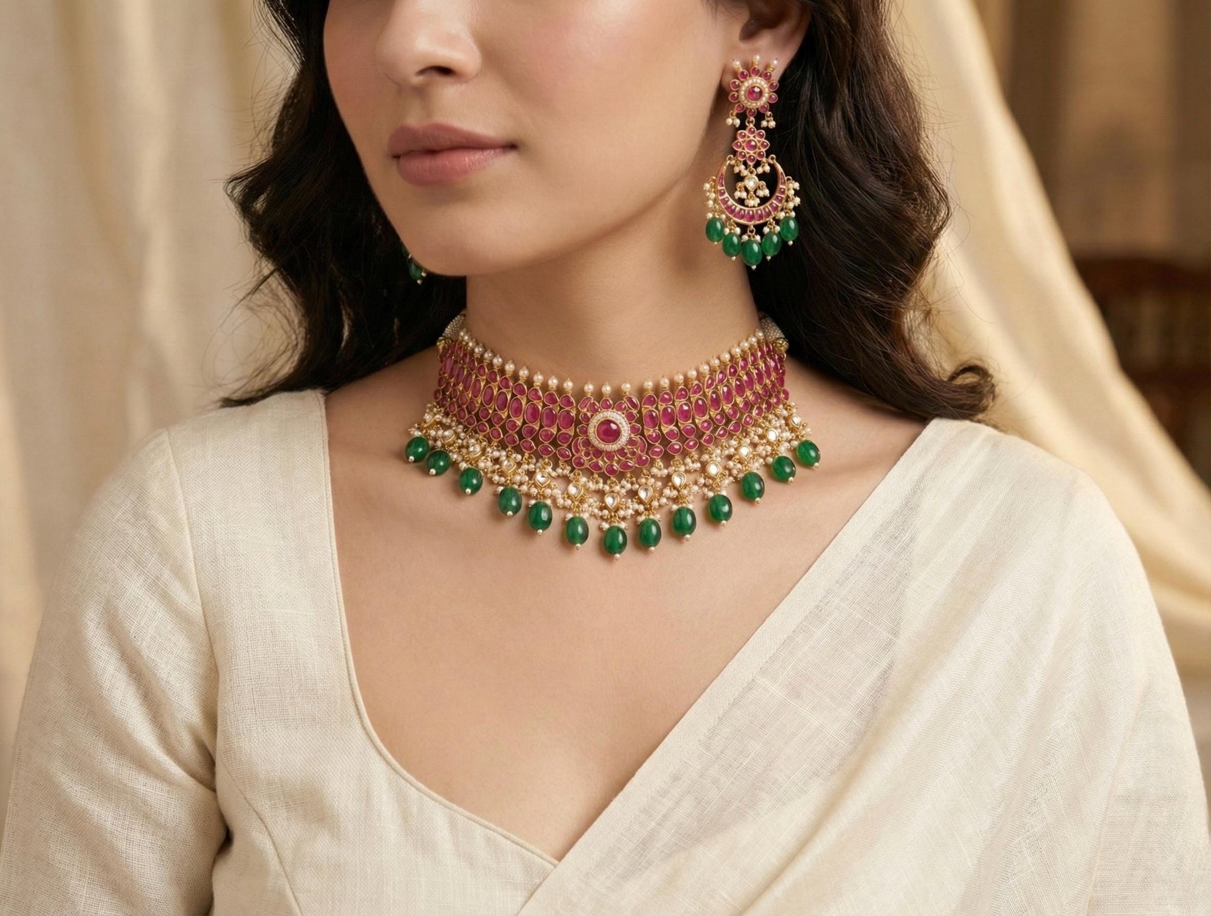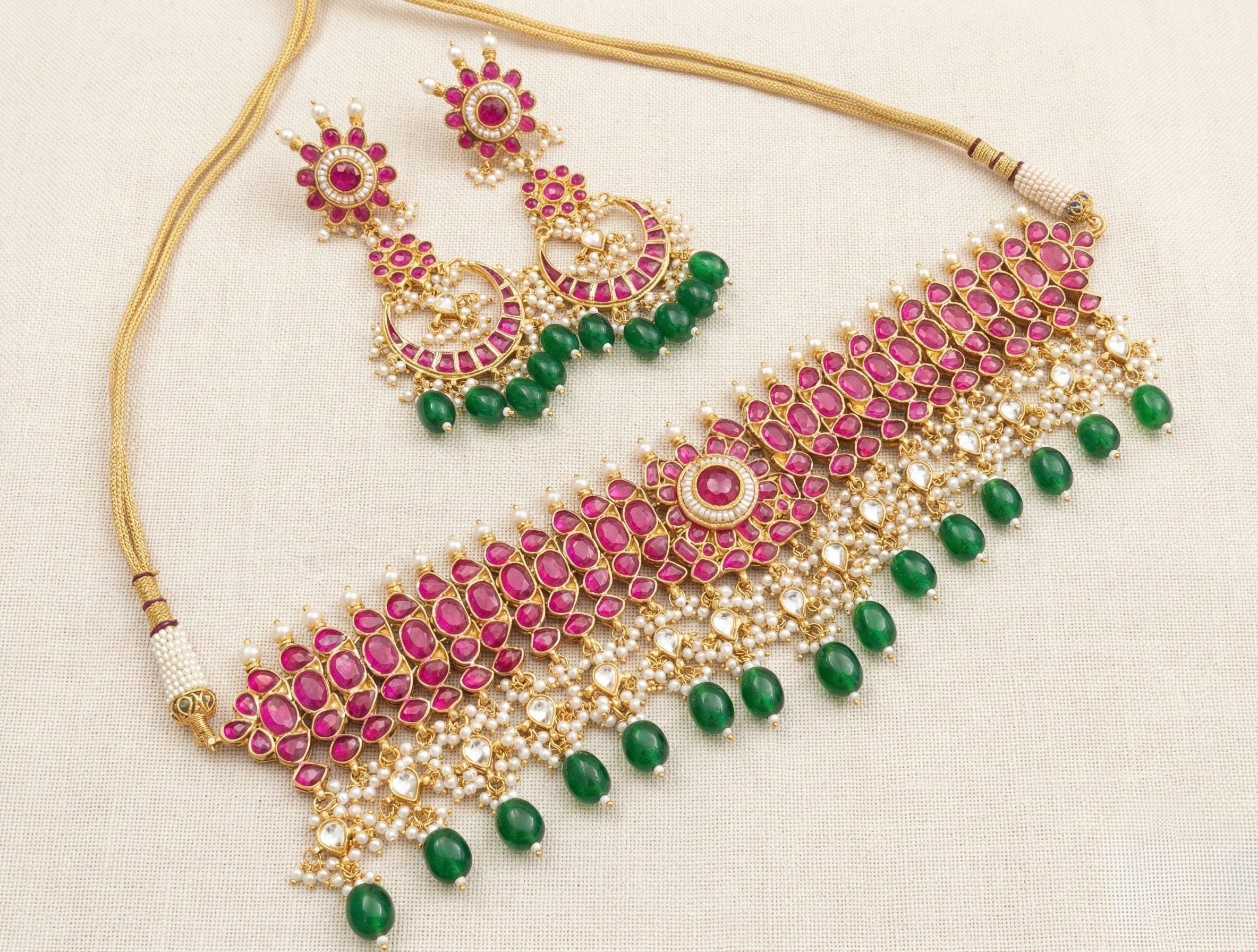 • It is a beautiful Ethnic Indian Wedding Choker with Statement Earrings.