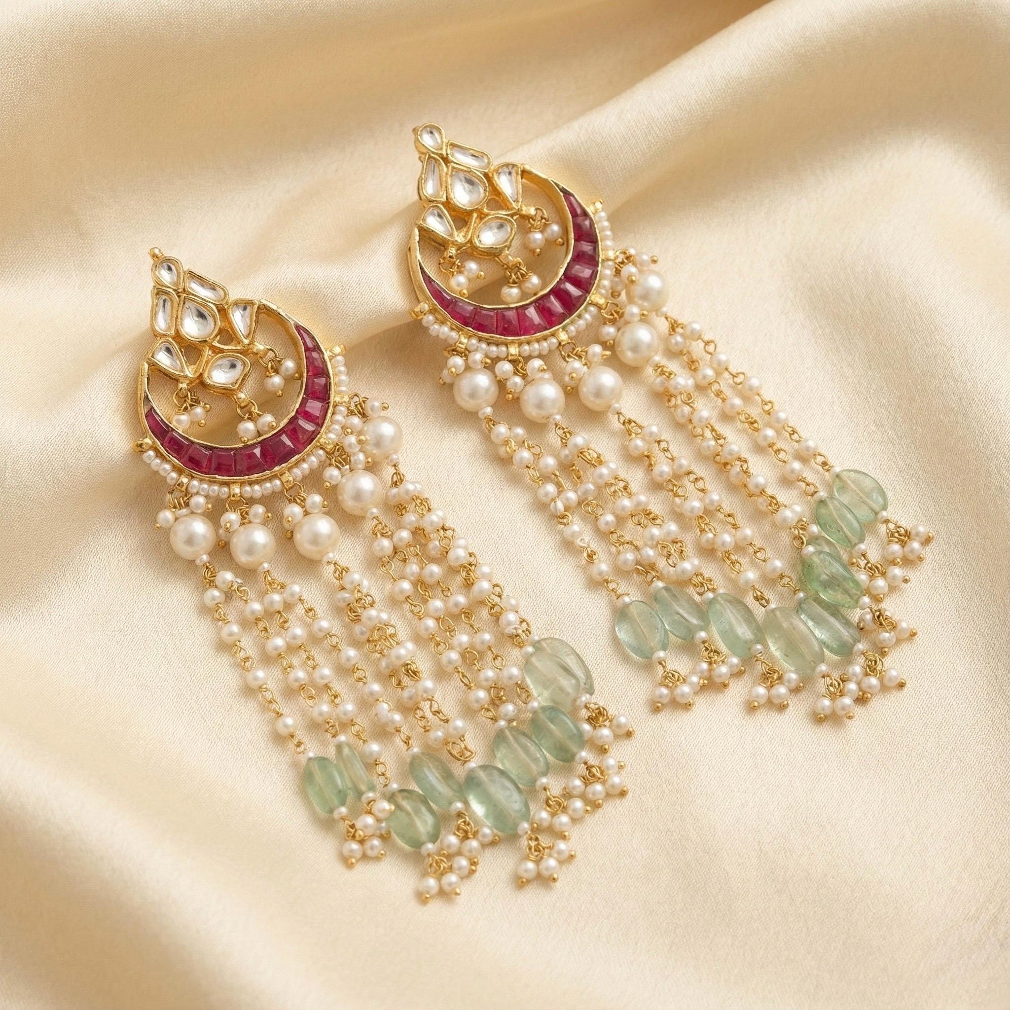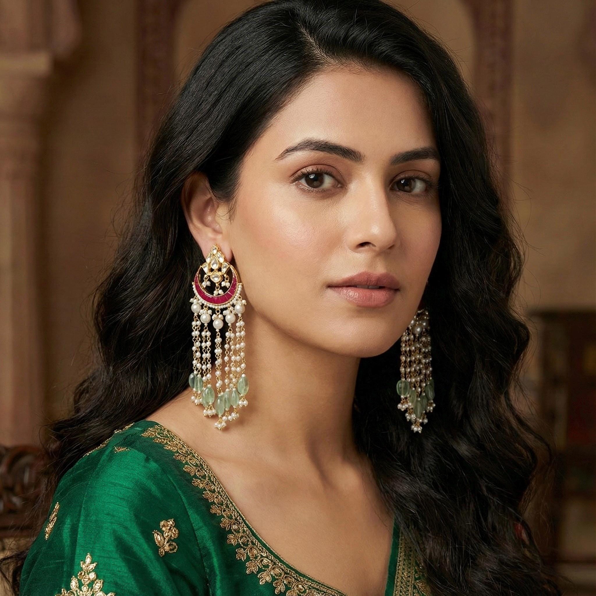 Kundan Jewelry Statement Earrings Kundan Bridal Jewelry Earrings for Indian and Pakistani Brides for all Occasions.