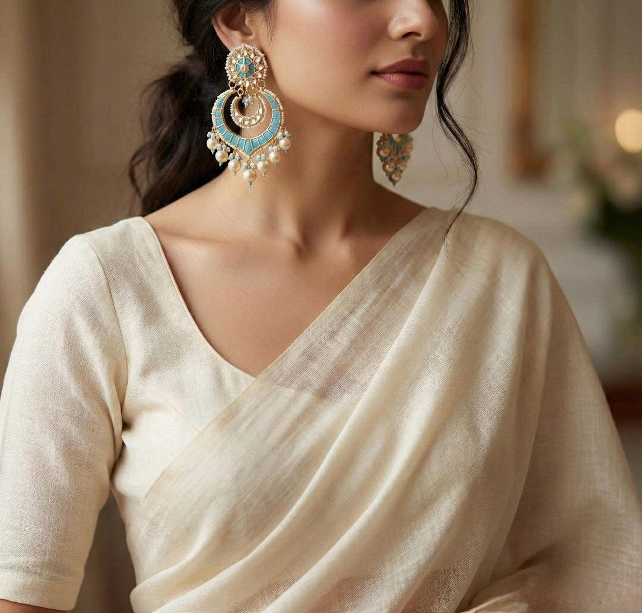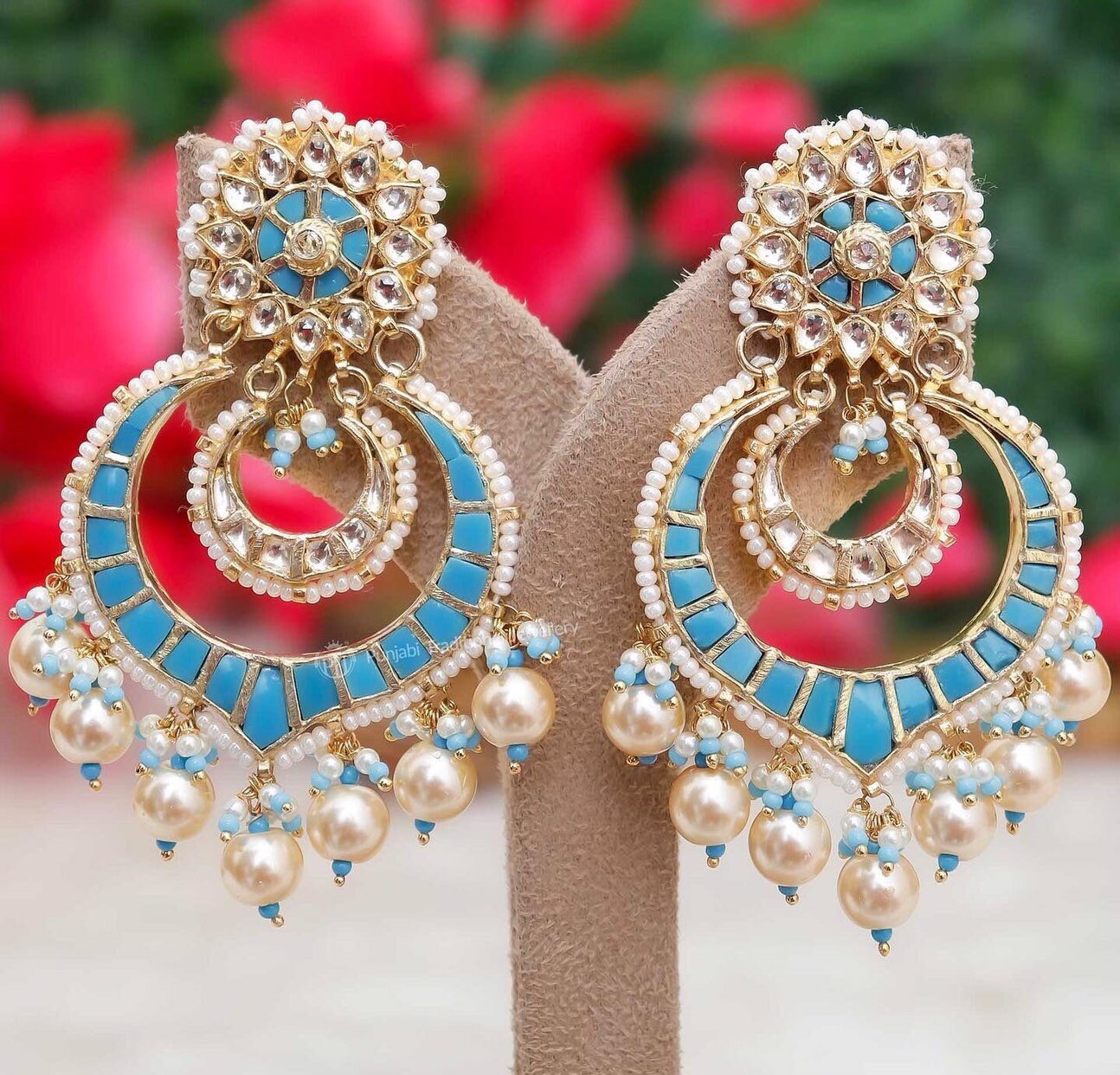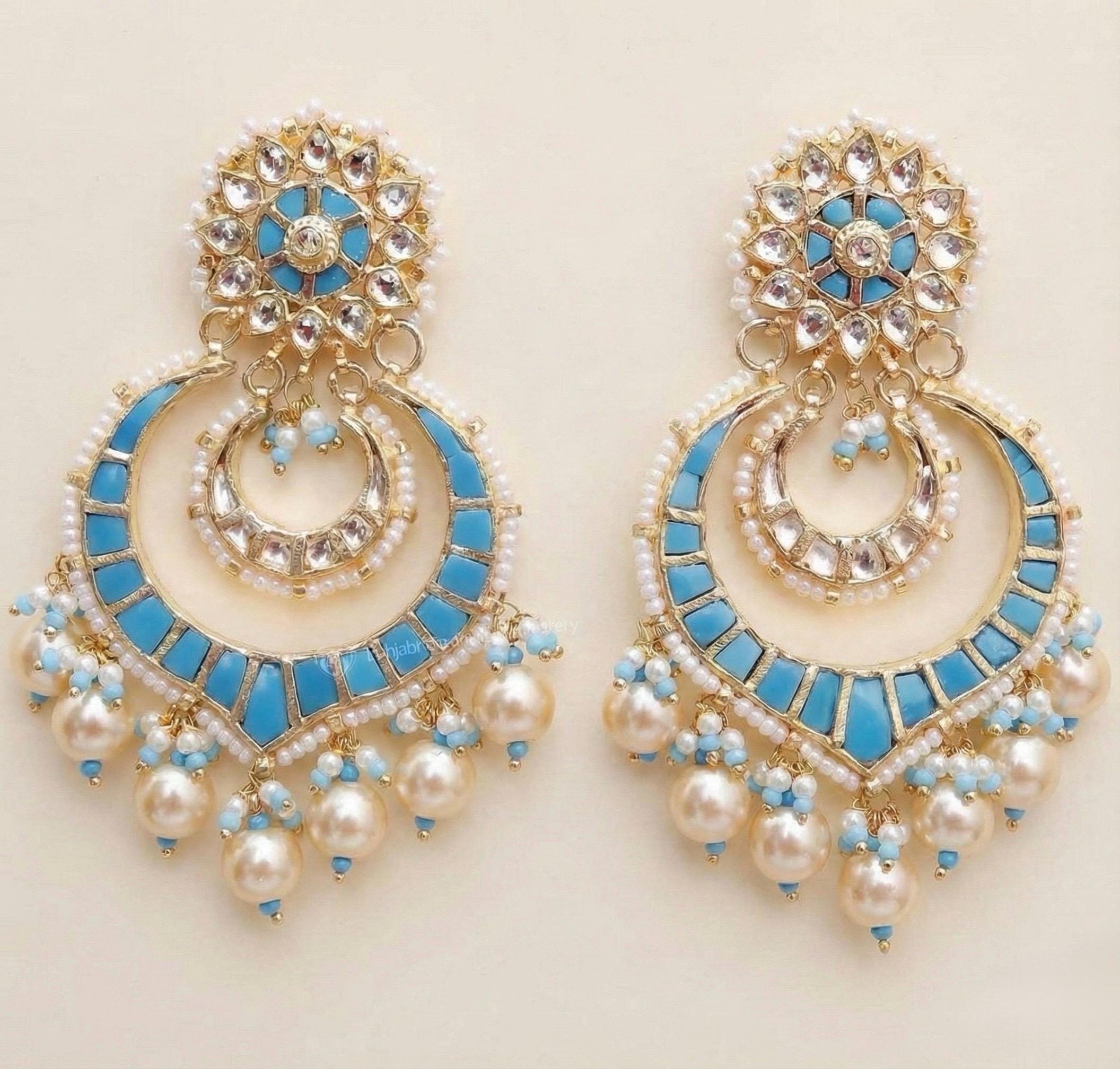 • Punjabi Earrings Chandbali Indian Ethnic Kundan Earrings.