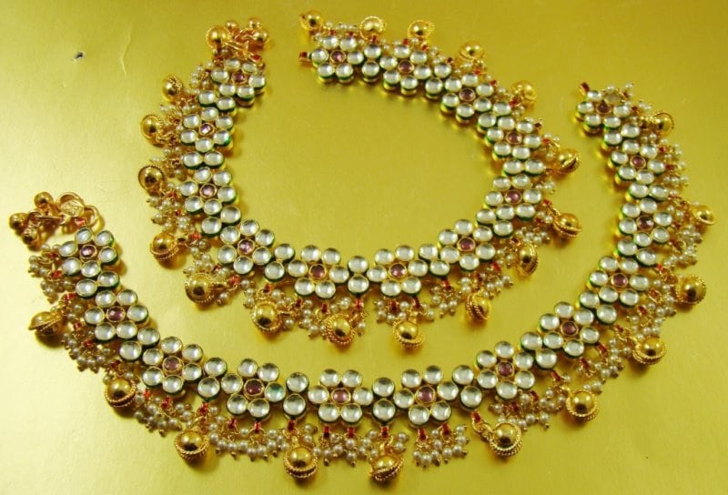• Indian Traditional Antique Kundan Jewelry Bridal Anklet Pair.