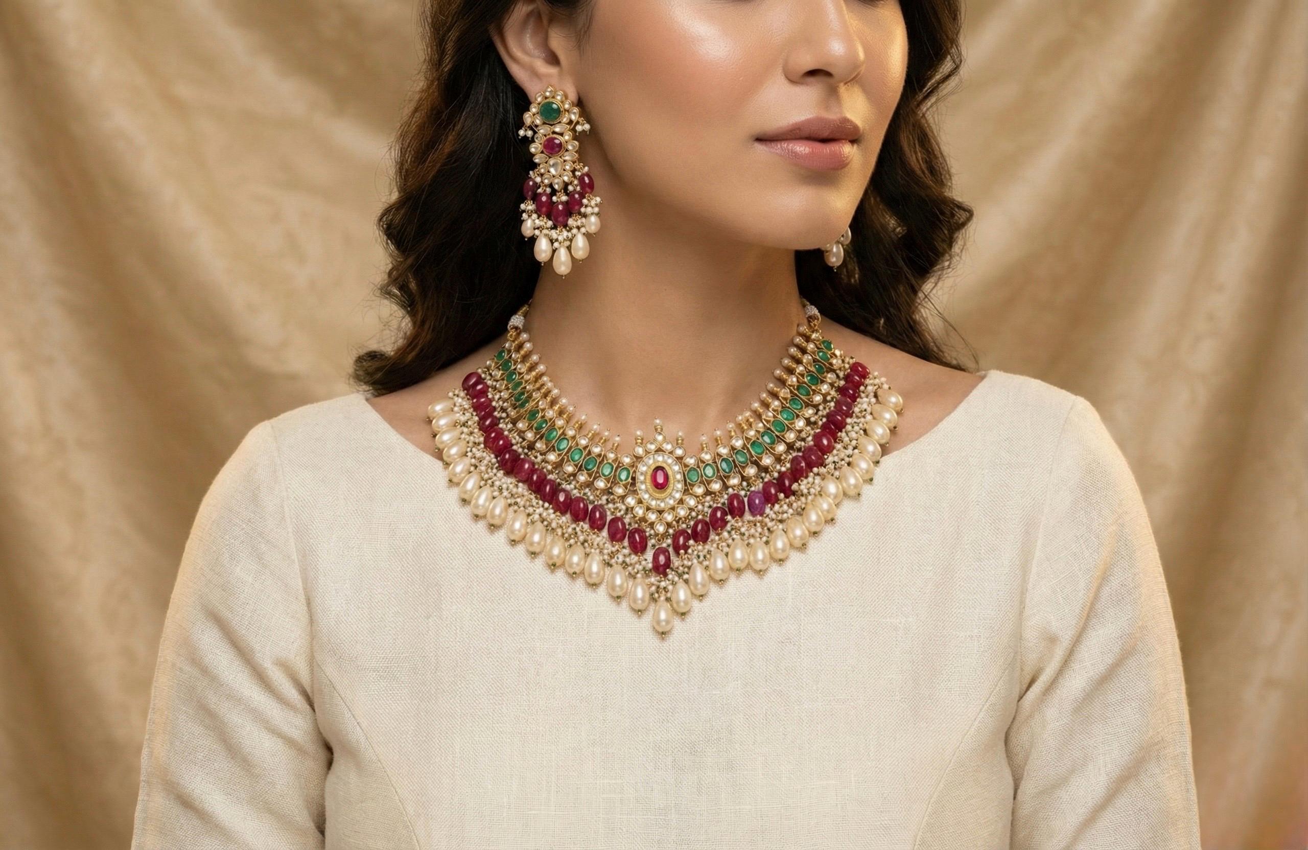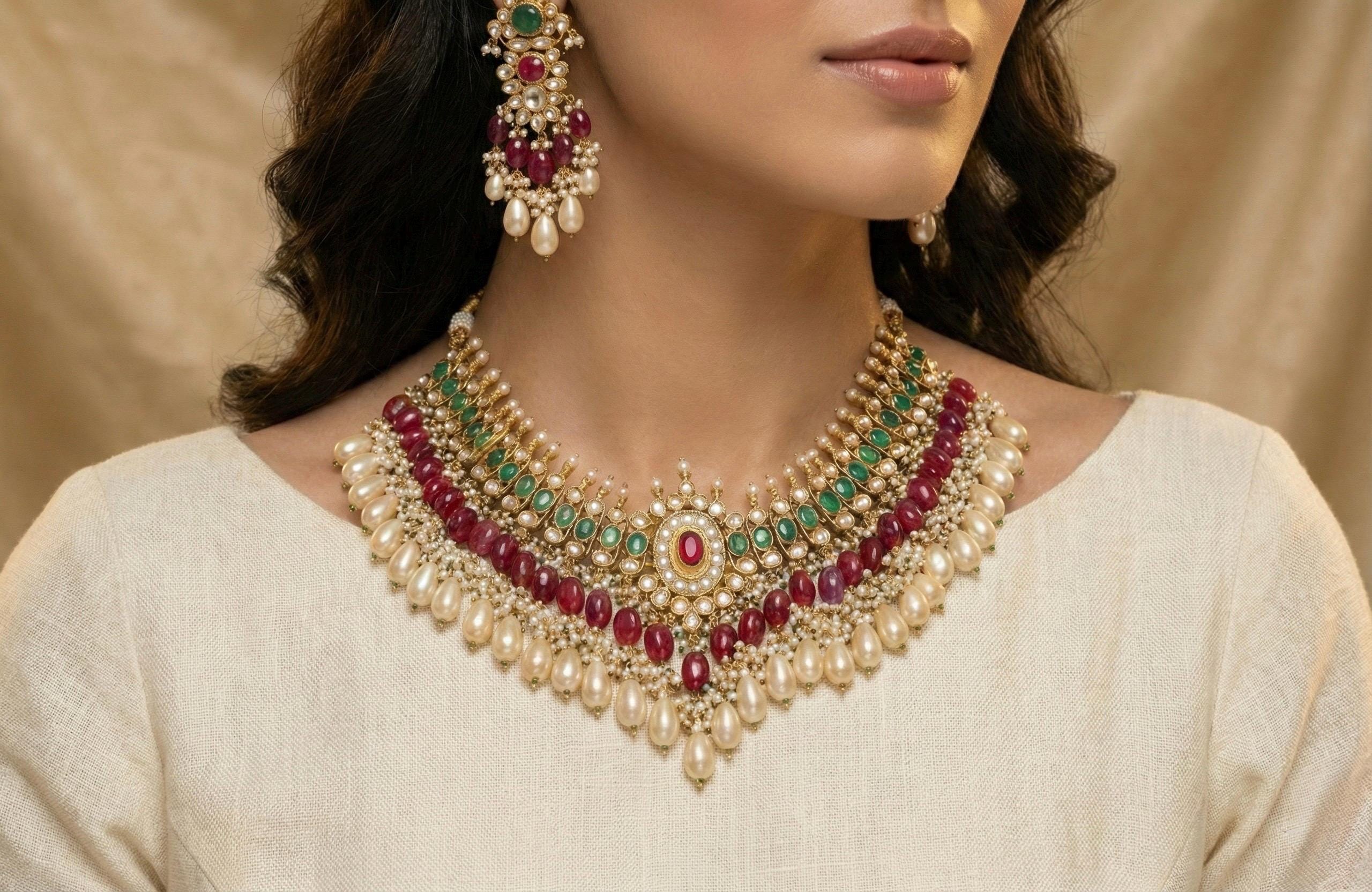 We are also providing custom made jewelry according to dress color and wedding requirements including designer pieces replication of custom design. You can contact us for custom requirement by providing your designs for Kundan Jewelry. We will be happy to replicate it according to customer demand.