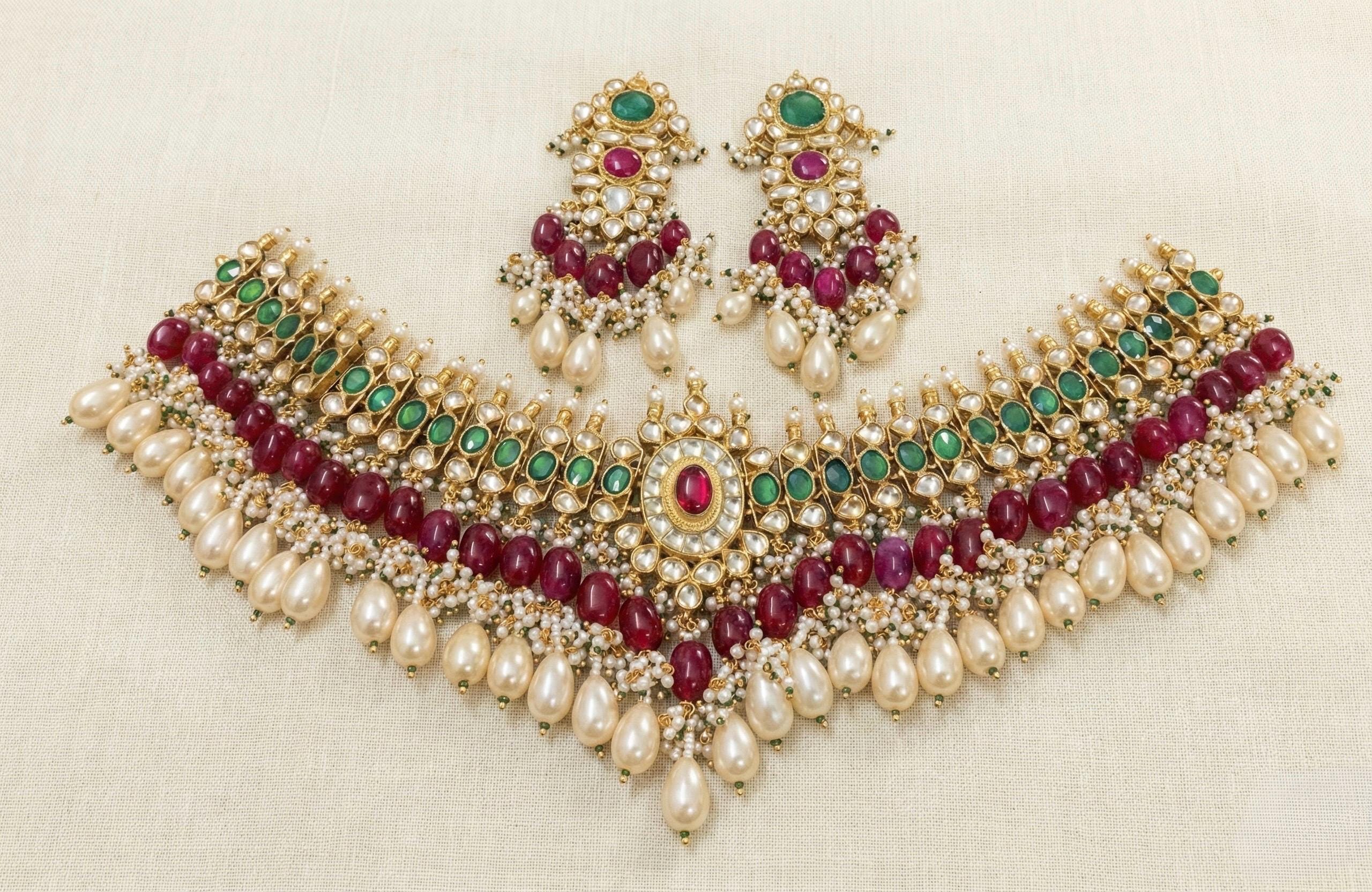 • It’s beautiful Multi Color Stones Wedding Choker with Statement Earrings.