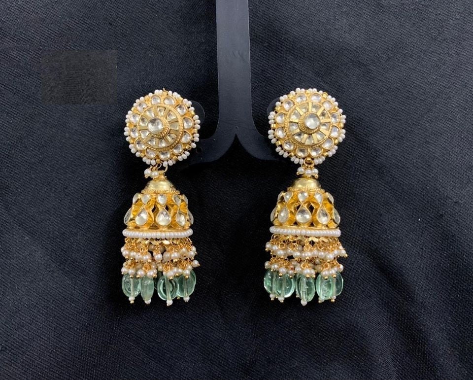 • It’s Handmade Indian Ethnic Kundan Earrings with Gold Plated Kundan Jumkhi.