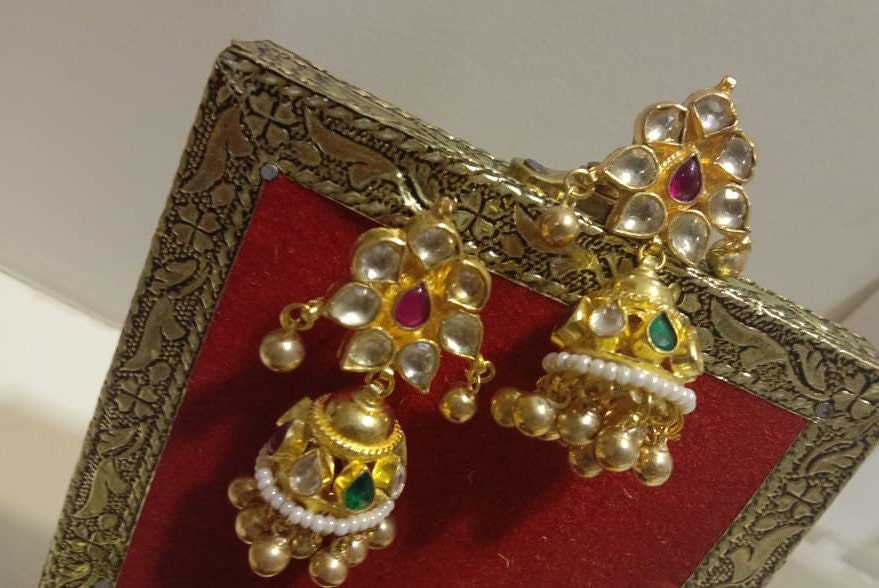 All of our Kundan Jewelry is 100% handmade and 22k Gold Plated with ancient Kundan stone setting method using silver foils. It is one of the most favorable jewelry since last some decades till present time for Indian as well as Asian Ethnic and Traditional Culture.