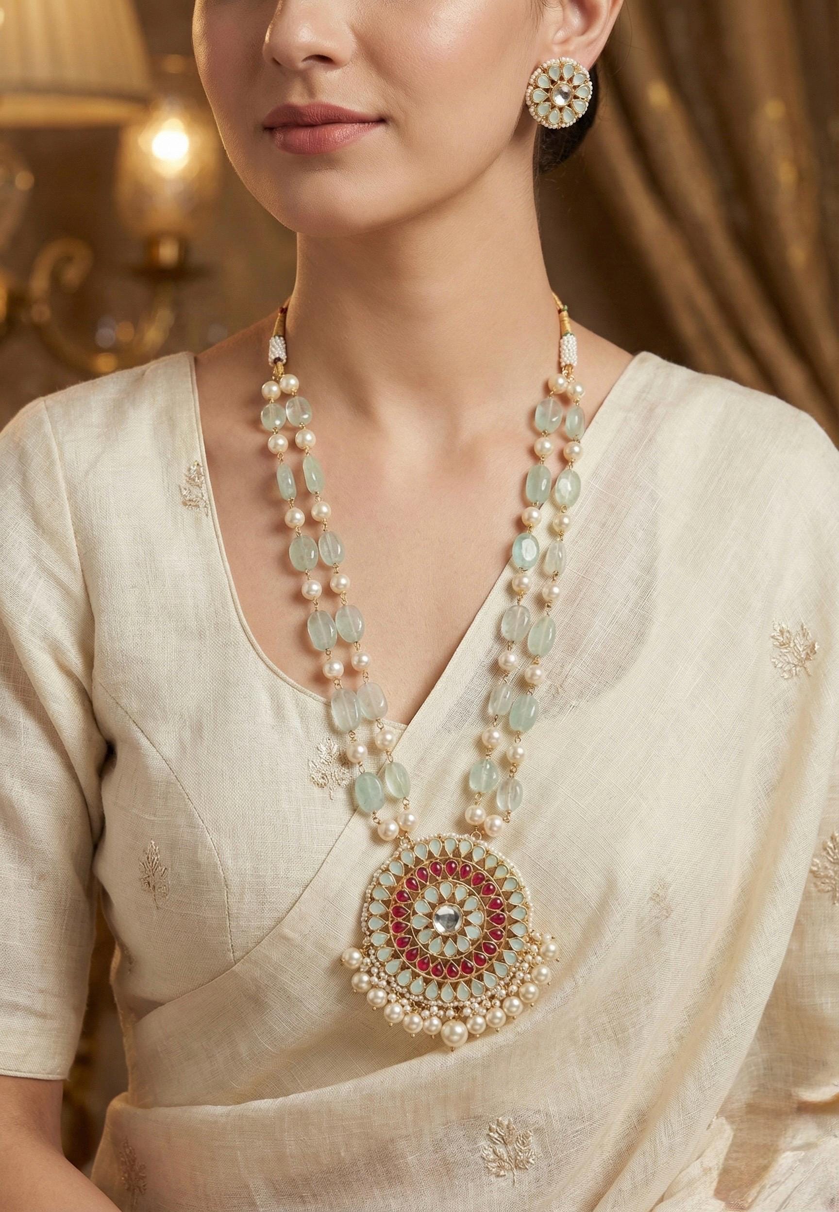 • Gold Plated Indian Kundan Jewelry Necklace and Earrings.