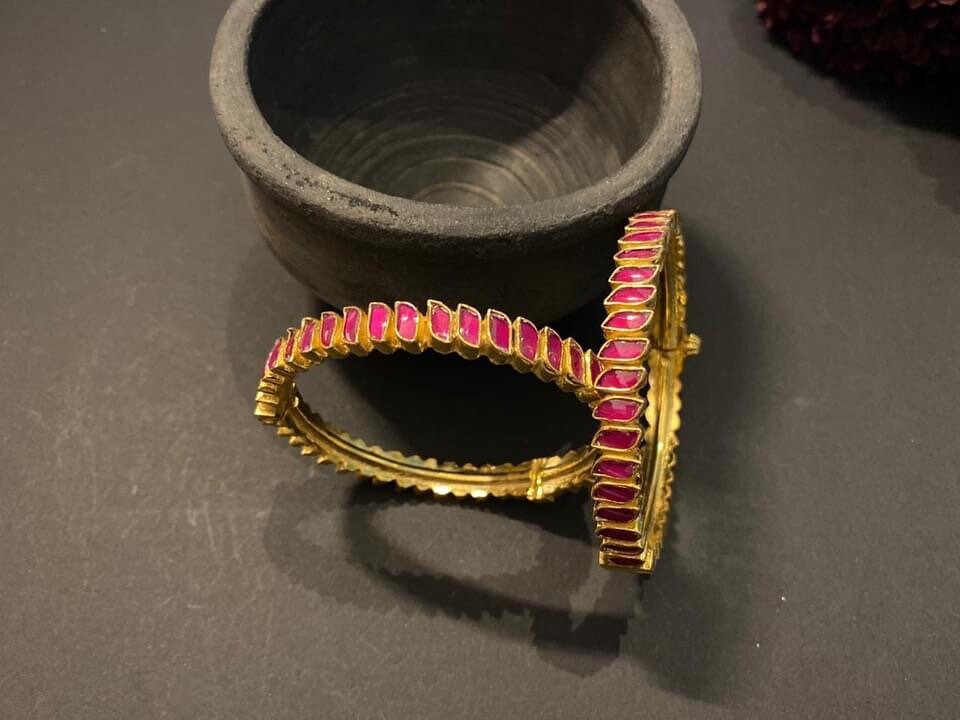 • This is Gold Finish Kundan Bangles Pair.Its Perfect for Wedding Occasion as well as Unique and Ethnic Traditional Bangle to gift and Also Bridal wear to match with Wedding Outfits.