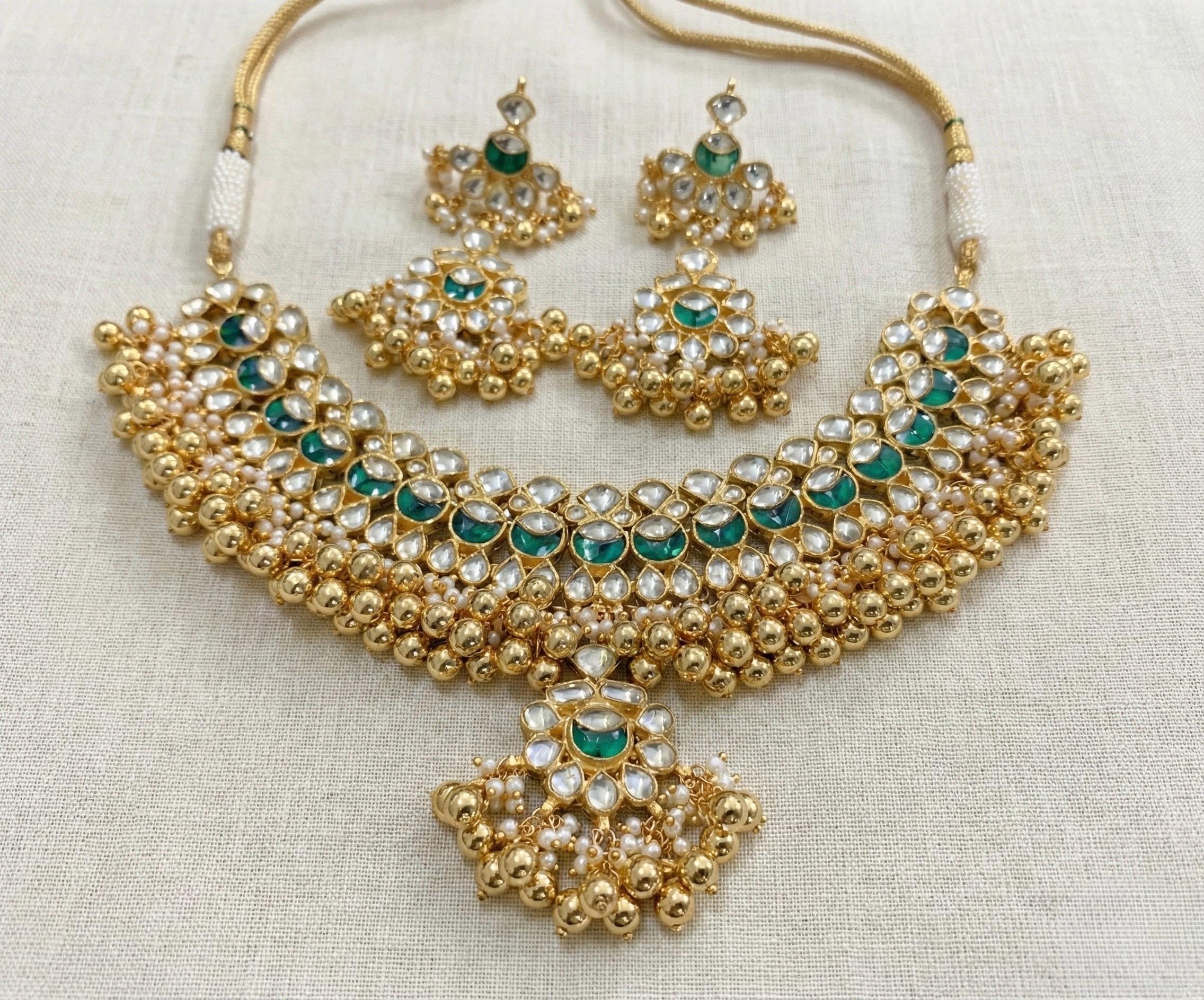 Sabyasachi Inspired Indian Kundan Choker Necklace with Jumkhi Earrings for South Indian Brides.
